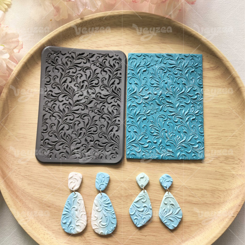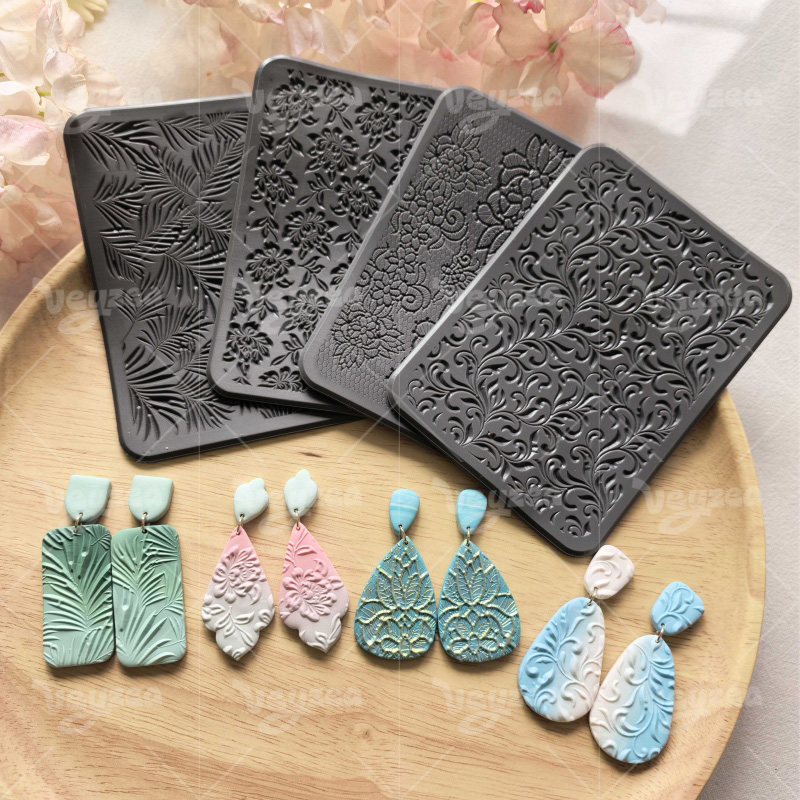 4 Unique 3D Floral & Leaf Textures: Create crisp, detailed embossed patterns for polymer clay jewelry, earrings, and crafts.