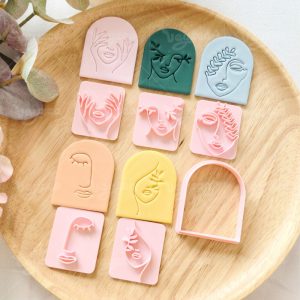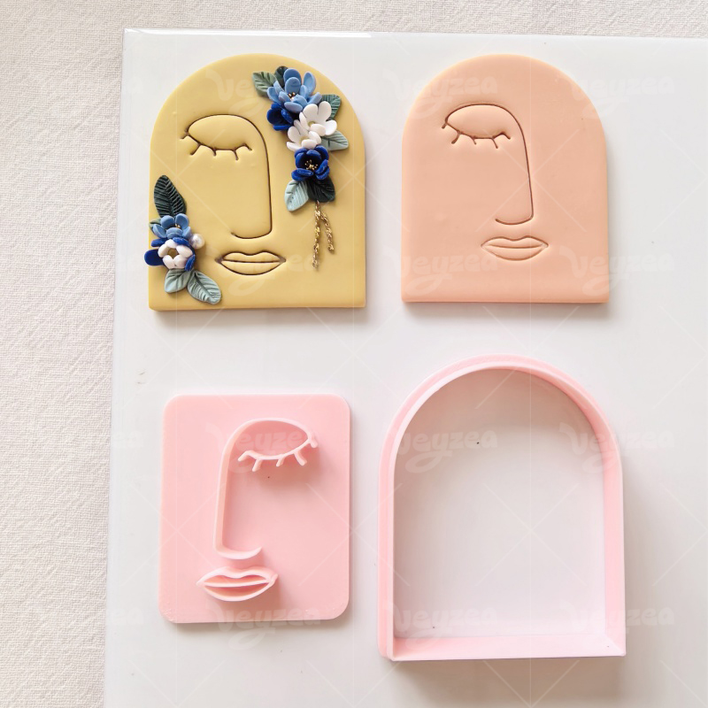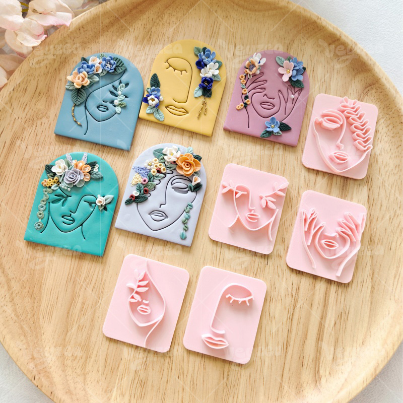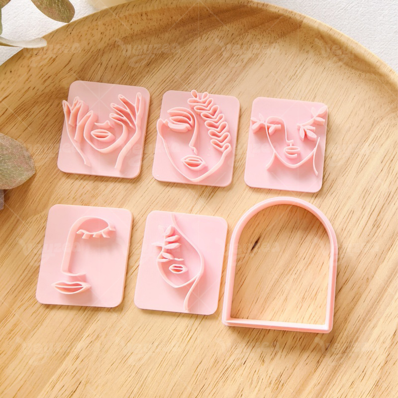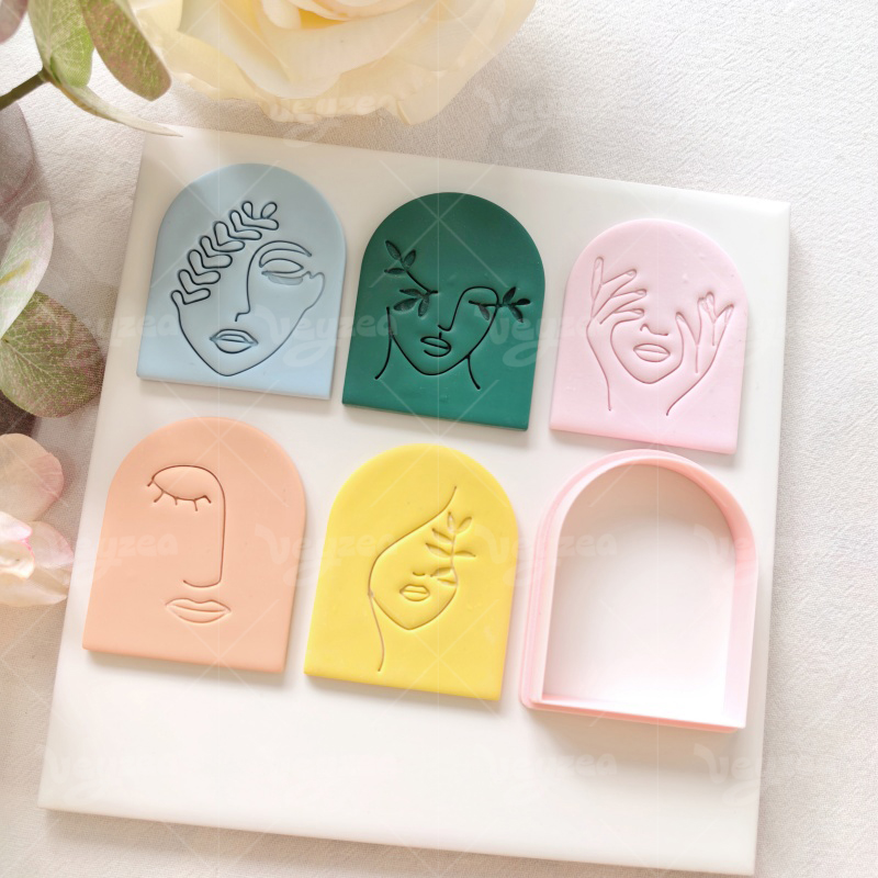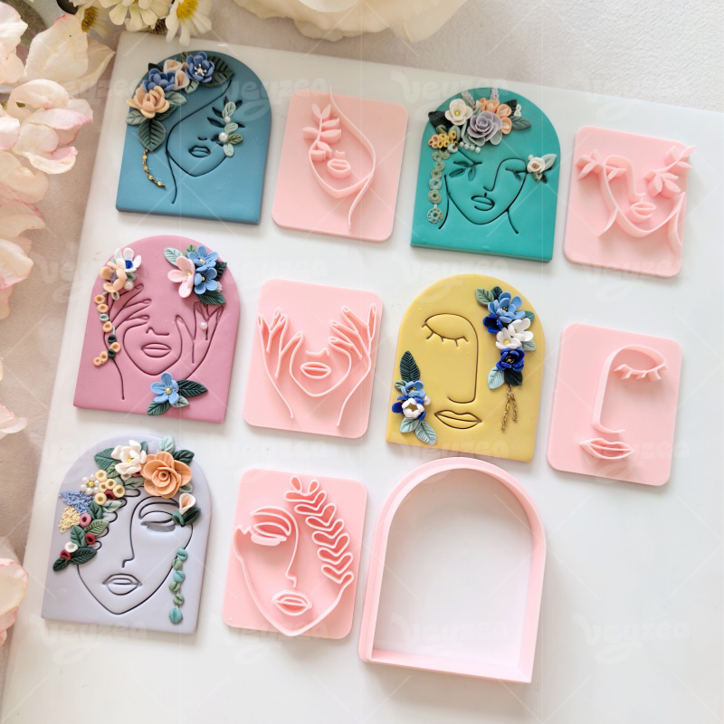 【 Abstract Face Art seal series Cutters Set 】6 polymer clay earring cutters:Abstract Face Art Polymer Clay Earrings Stamp Mold Clay Cutters,Modern Facial Clay Cutters Stamp Set Clay Cutters,Contains A Variety Of Abstract Face Lines, Such As Side Face With Eyes Closed, Face Wrapped With Flowers, Face Supported By Hands, Etc.