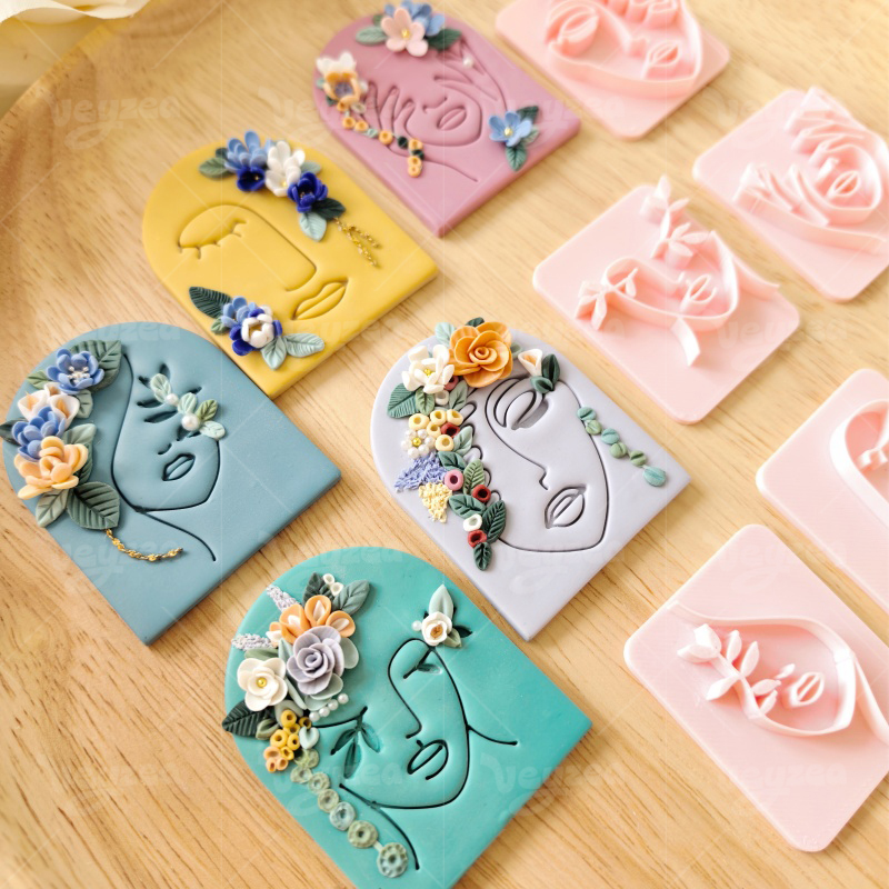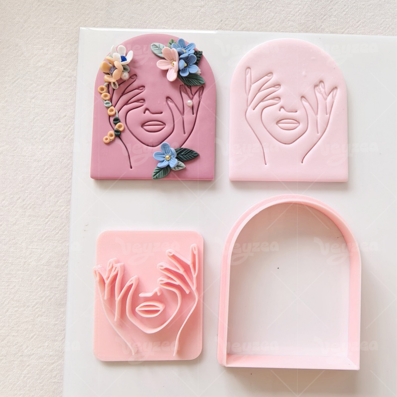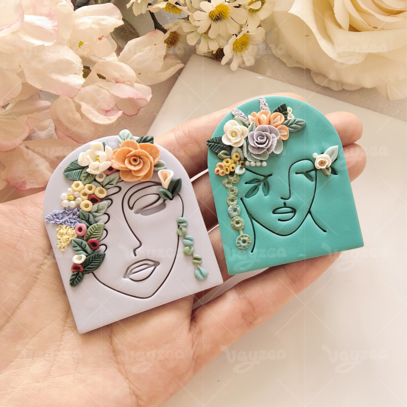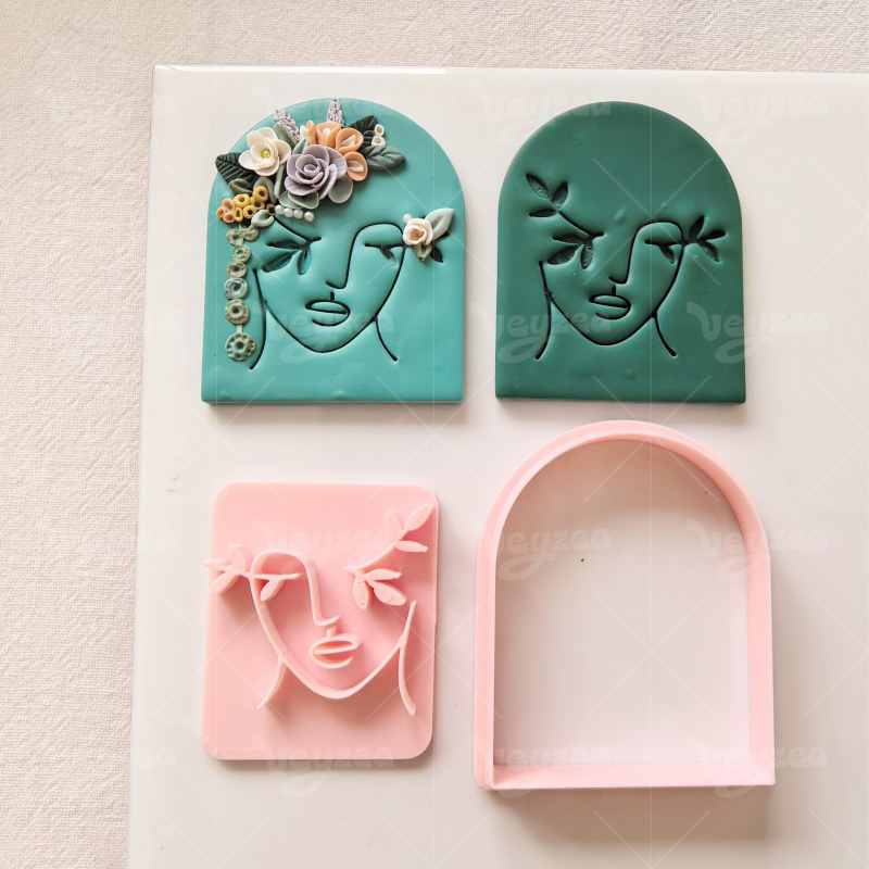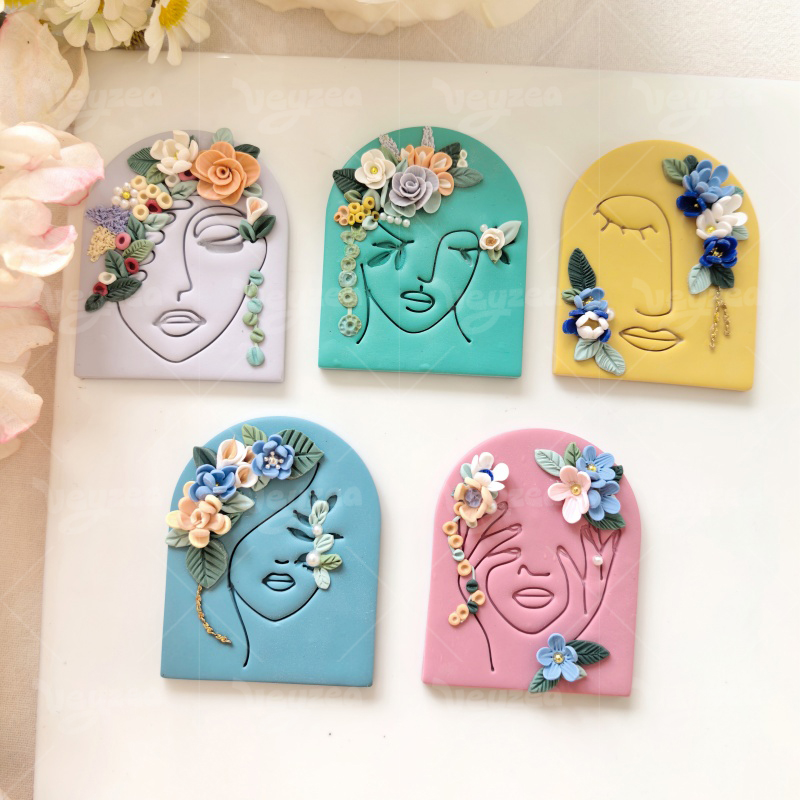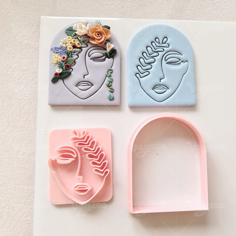 【 Abstract Face Art seal series Cutters Set 】6 polymer clay earring cutters:Abstract Face Art Polymer Clay Earrings Stamp Mold Clay Cutters,Modern Facial Clay Cutters Stamp Set Clay Cutters,Contains A Variety Of Abstract Face Lines, Such As Side Face With Eyes Closed, Face Wrapped With Flowers, Face Supported By Hands, Etc.