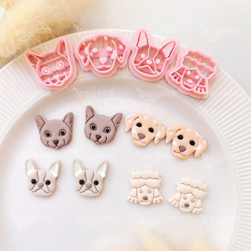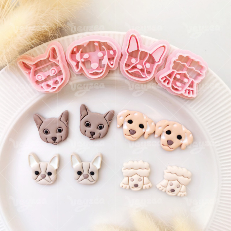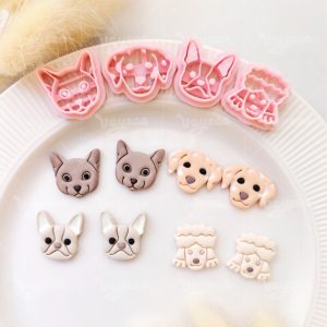 【 Animal Head Series Cutters Set 】4 polymer clay earring cutters:Animal Head Polymer Clay Earring Mold Clay Cutters,Cute Animal Earrings Clay Mold Clay Cutters,Cat Clay Cutters, Ordinary Dog Clay Cutters, French Bulldog Clay Cutters, Poodle Clay Cutters.