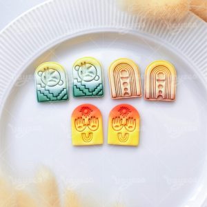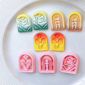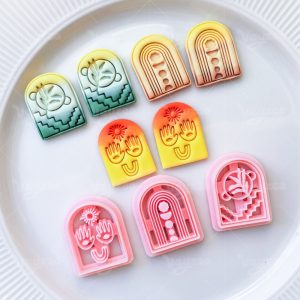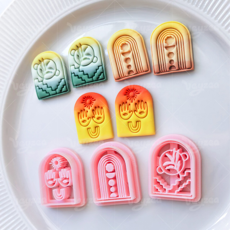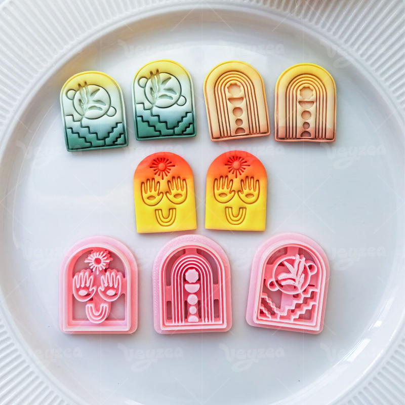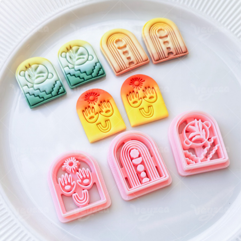 【 Arched Cutters Set 】3 polymer clay earring cutters:Bohemian Style Arched Polymer Clay Earrings Mold Clay Cutter,Art Deco Arched Clay Knife Set Clay Knife,Sun Hands Inside Arched Silhouette, Botanical Floral Pattern.