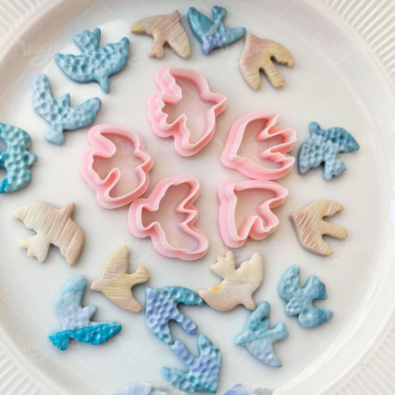 【 Bird Series Cutters Set 】5 polymer clay earring cutters:Bird Textured Polymer Clay Earring Mold Clay Cutters,Natural Art Earrings Clay Mold Clay Cutters,Contains A Variety Of Different Flying Bird Cutting Dies, Which Can Be Used To Create Natural And Artistic Jewelry.