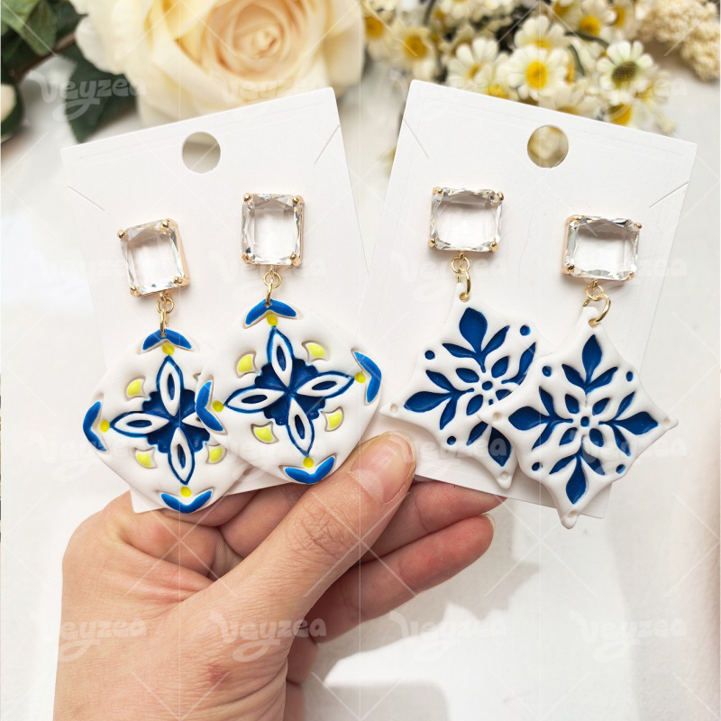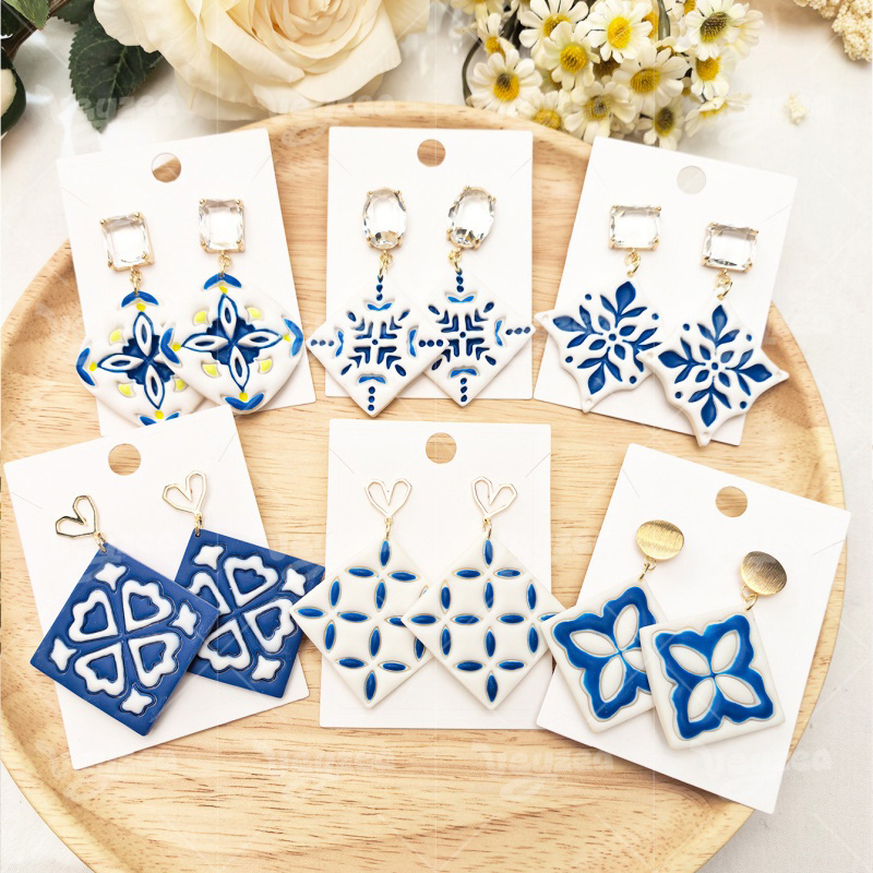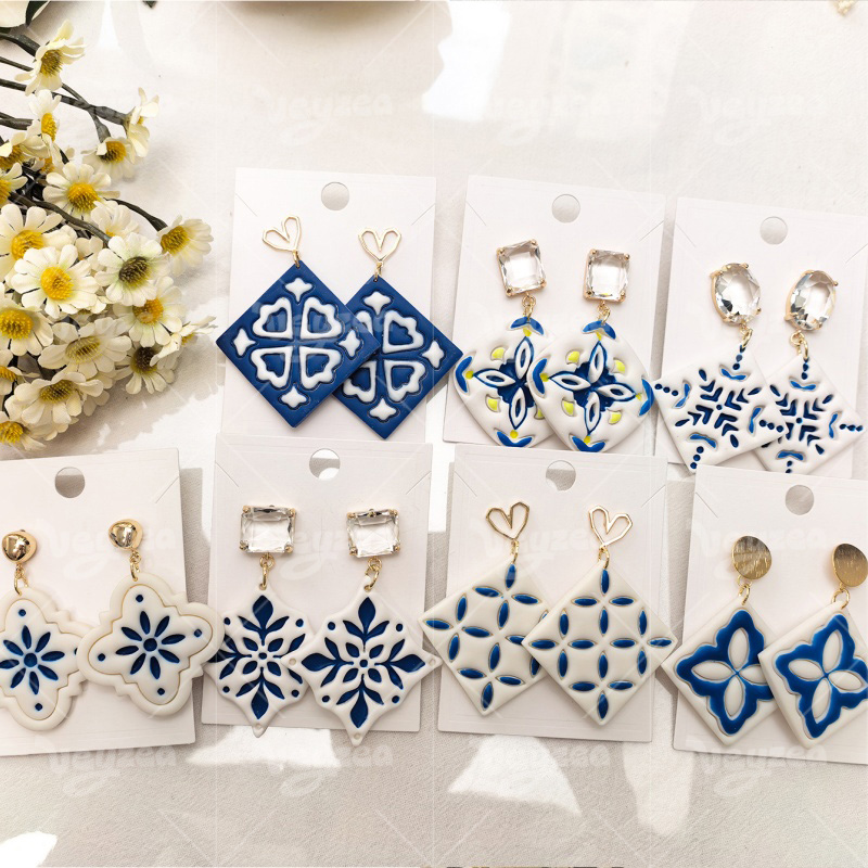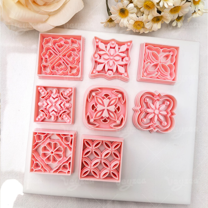 【 Boho Style Clay Cutters Set 】8 polymer clay earring cutters: Moroccan Tile Polymer Clay Earring Mold Clay Cutters,Bohemian Flower Clay Knife Set Clay Cutters,Retro Tile Pattern Clay Cutters,Vintage Geometric Floral Relief Clay Cutters,Square / Rounded Square Profile Clay Cutters.