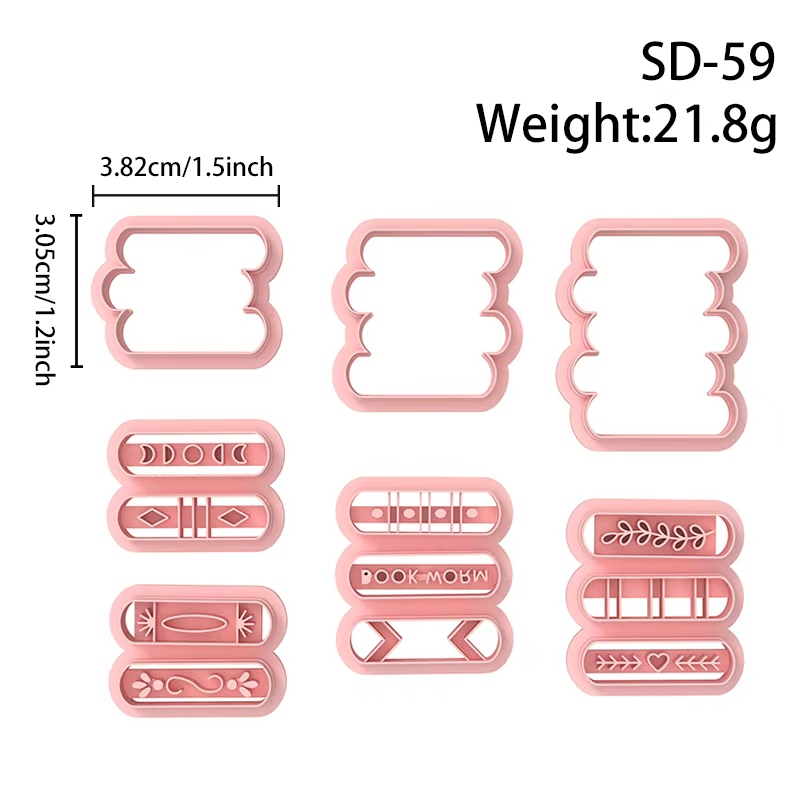 【 Books series Cutters Set 】7 polymer clay earring cutters:Books Polymer Clay Earring Mold Clay Cutters,Literary Art Earrings Clay Molds Clay Cutters,Contains A Variety Of Book Textures, Such As Letters, Patterns, Geometric Lines, Etc.