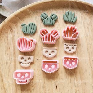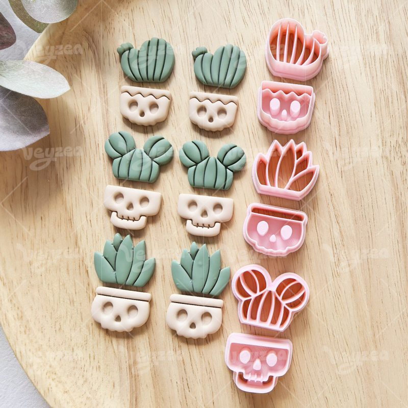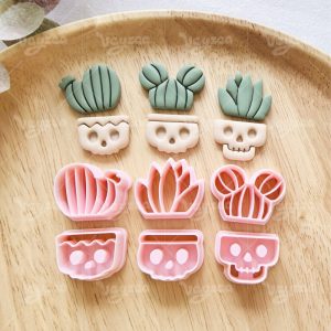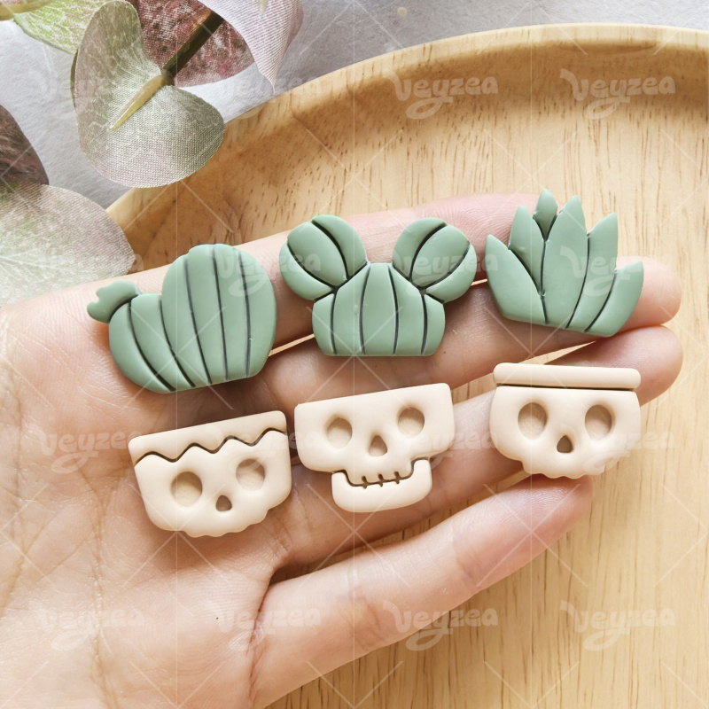 【 Cactus Series Cutters Set 】6 polymer clay earring cutters:Skull Flower Pot Polymer Clay Earring Mold Clay Cutters,Cactus Clay Cutters Set Clay Cutters,It Includes Three Skull Flowerpots Of Different Designs And Three Cacti Of Different Shapes. The Combination Of Cactus And Skull Is Full Of Personality And Contrast.