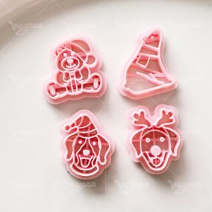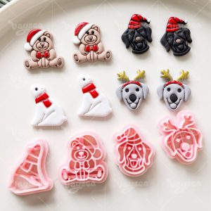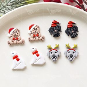 【 Christmas Animal Series Cutters Set 】4 polymer clay earring cutters:Christmas Animal Polymer Clay Earring Mold Clay Cutters,Includes A Variety Of Christmas Animal Images Including A Teddy Bear Wearing A Christmas Hat, A Polar Bear Wearing A Red Scarf, A Black Dog Wearing A Christmas Hat, A Greyhound Wearing Antlers, Etc.