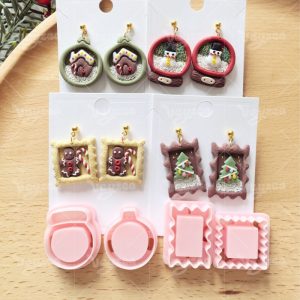 【 Christmas Scene series Cutters Set 】4 polymer clay earring cutters:Christmas Scene Polymer Clay Earring Mold Clay Cutters,Contains Crystal Ball Clay Cutters, Christmas Light Clay Cutters, Stamp-Shaped Clay Cutters, Etc., Which Can Be Matched With Gingerbread Men, Christmas Trees And Other Elements To Enhance The Festive Atmosphere.