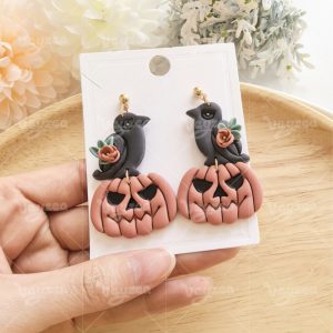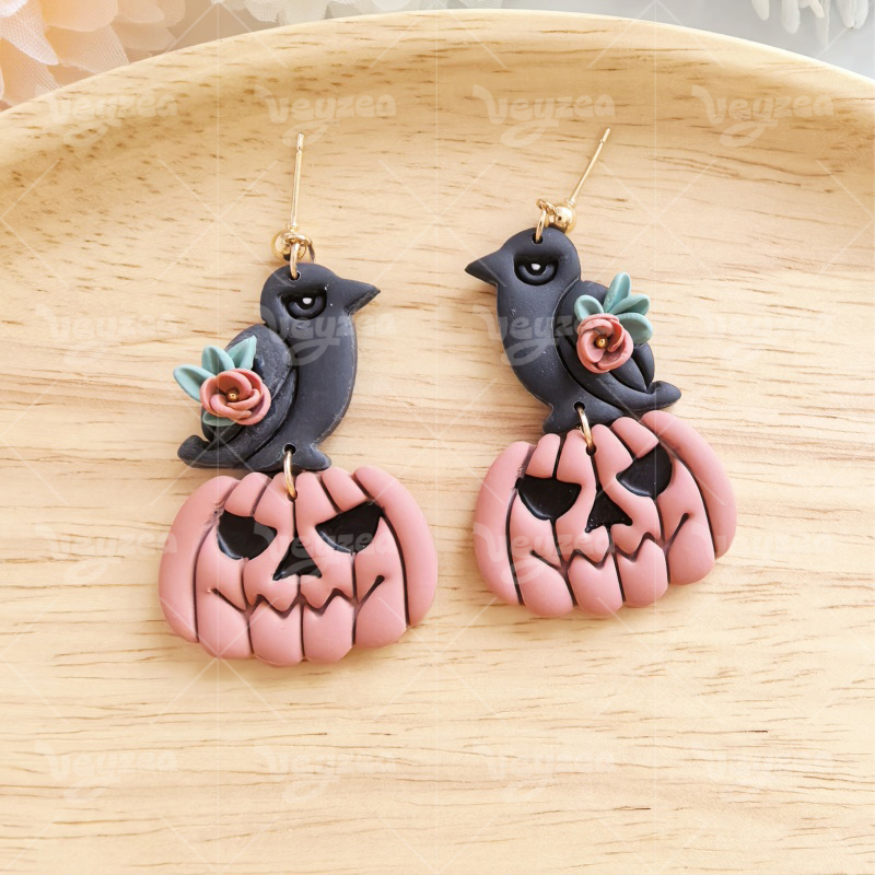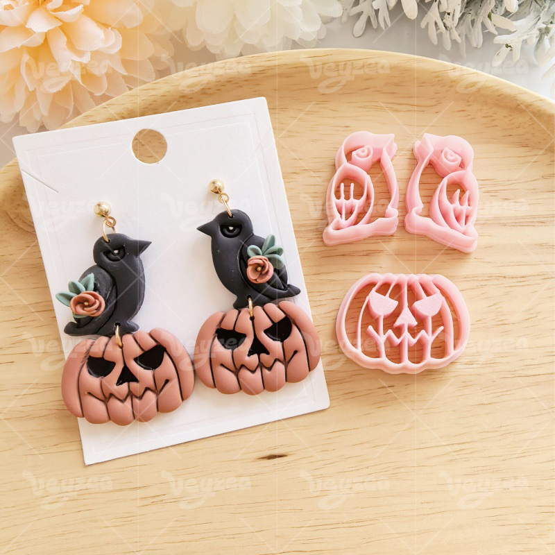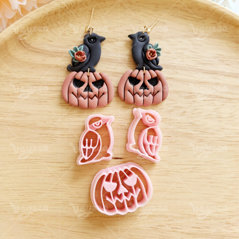 【 Halloween Cutters Set 】3 polymer clay earring cutters:Halloween Clay Cutters Set Clay Cutters,Includes Crow Clay Cutters And Pumpkin Clay Cutters Polymer Clay Earring Molds For A Festive Look And Personality.