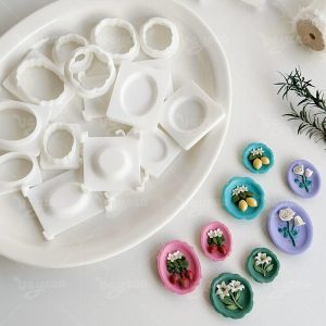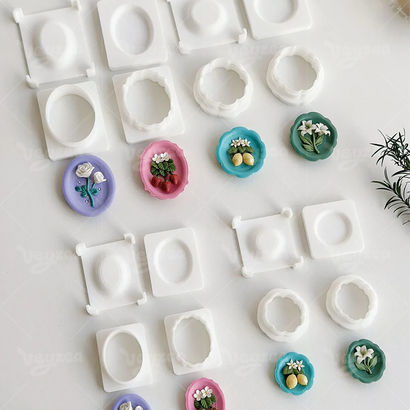 Decorated Plates Clay Cutters Set: Create vintage-style scalloped/oval plate bases for polymer clay jewelry & crafts.