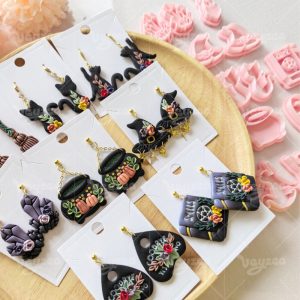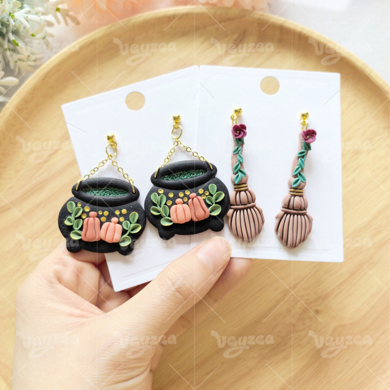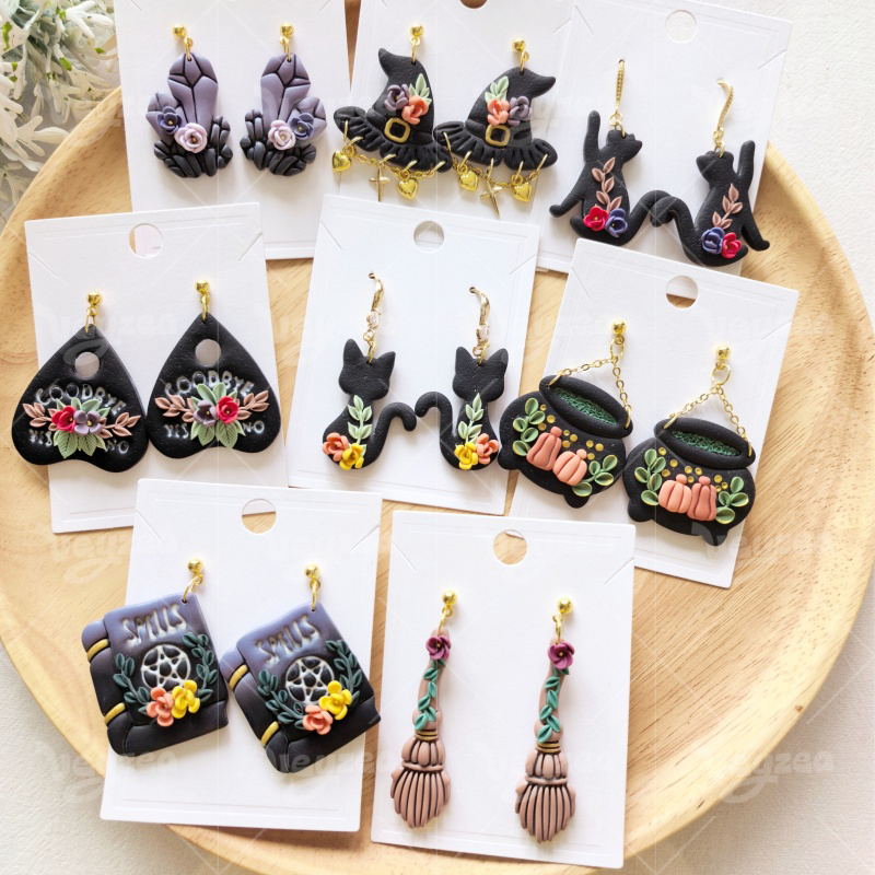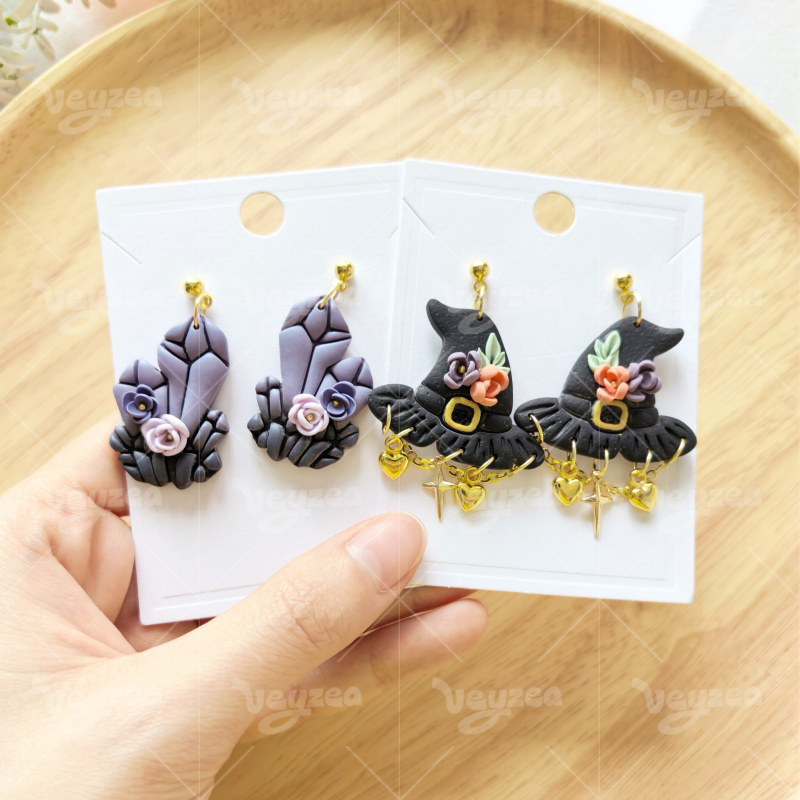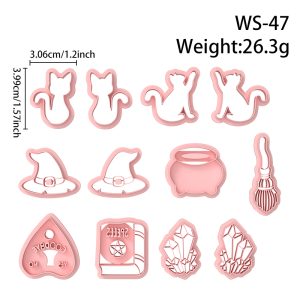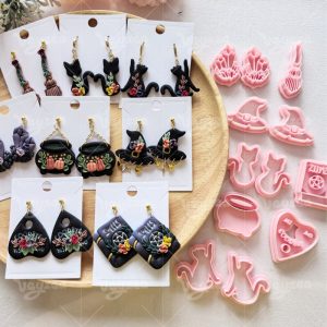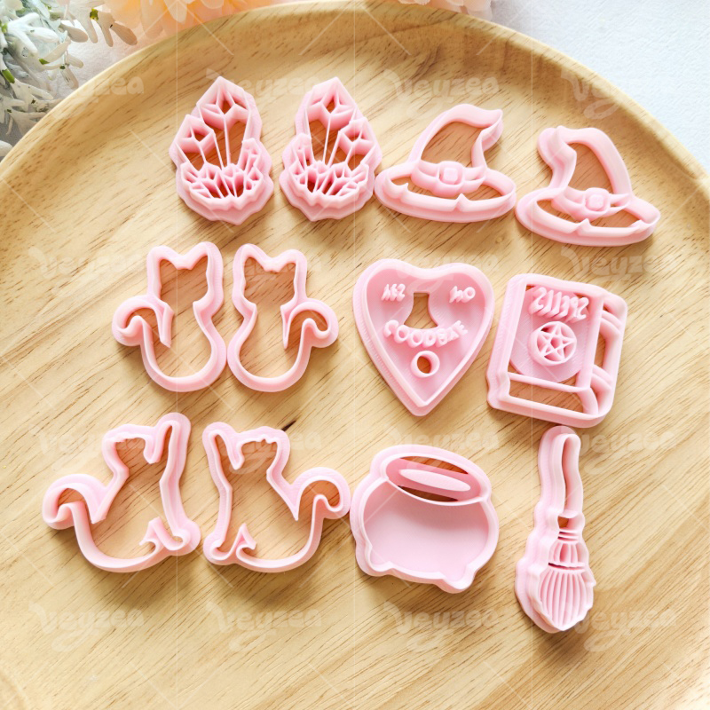 【 Fantasy Magic Series Cutters Set 】12 polymer clay earring cutters: Fantasy Magic Polymer Clay Earring Mold Clay Cutters,Contains Crystal Cluster Clay Cutters, Witch Hat Clay Cutters, Cat Clay Cutters, Magic Book Clay Cutters, Broom Clay Cutters And Other Elements Full Of Witch Magic.