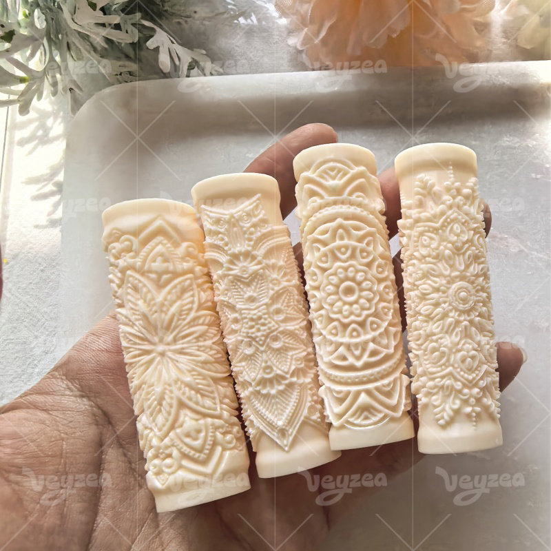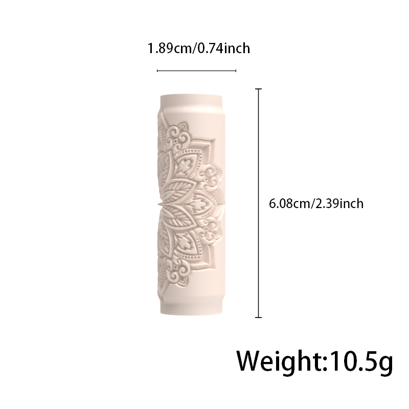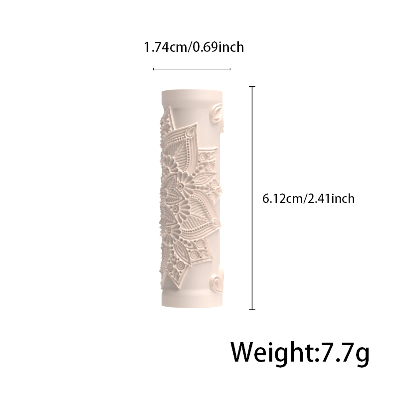 Measures approximately 3.15 inches in length and 0.79 inches in diameter, suitable for both large surface texturing and small decorative details.