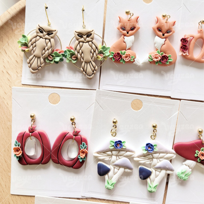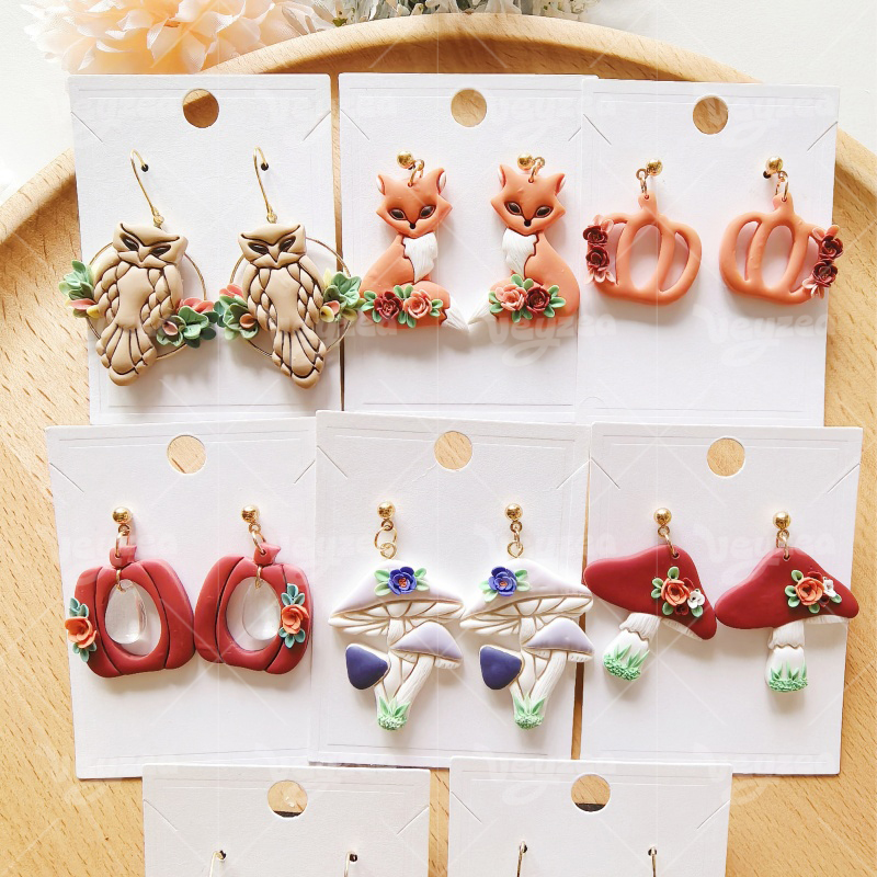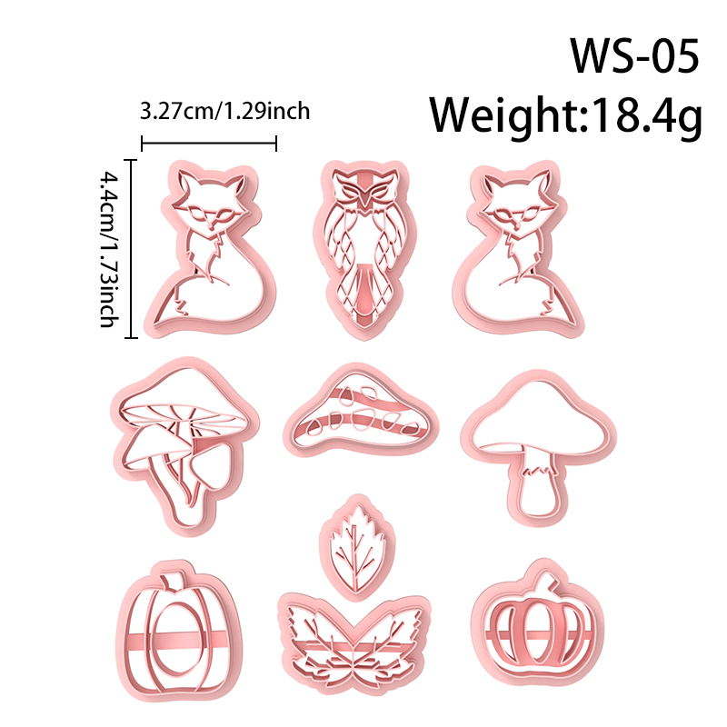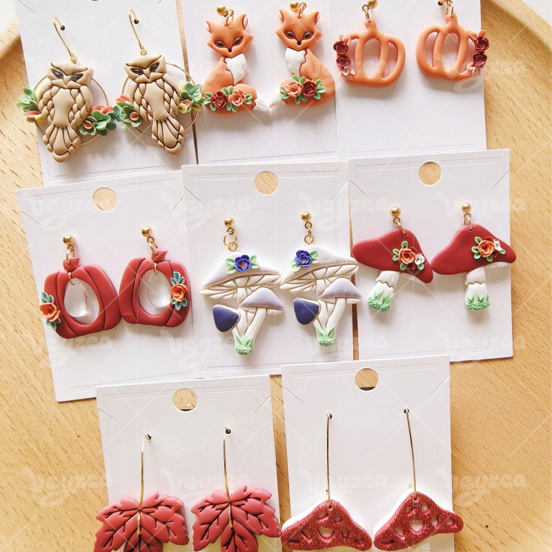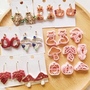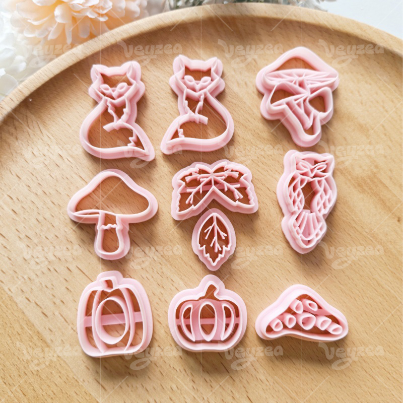 【 Forest Autumn Series Cutters Set 】10 polymer clay earring cutters:Forest Autumn Polymer Clay Earring Mold Clay Cutters,Fox Mushroom Clay Cutters Set,Contains Forest And Autumn Elements Such As Foxes, Owls, Mushrooms, Maple Leaves, Pumpkins, Etc.
