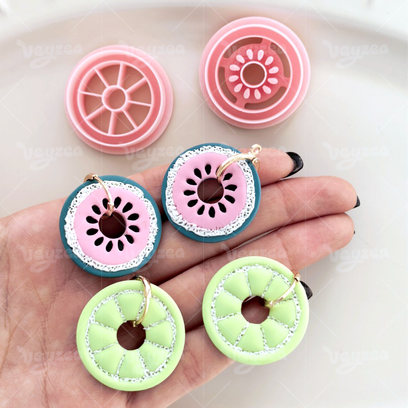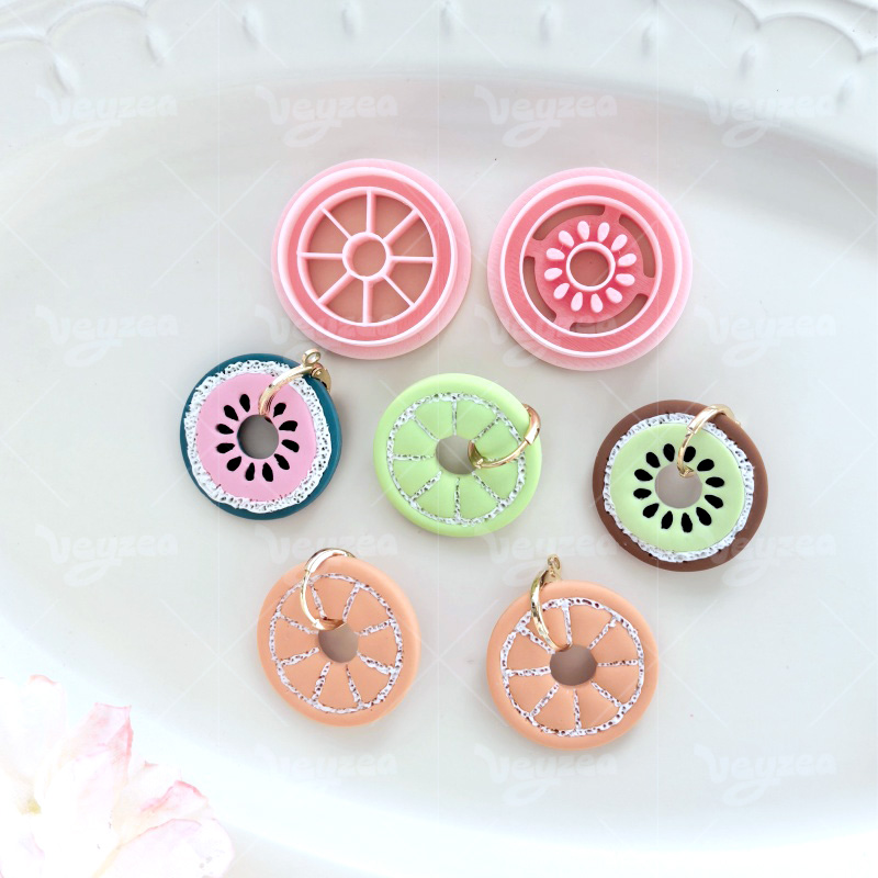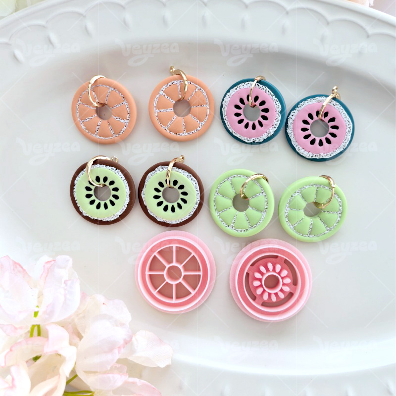 【 Fruit Slice Cutters Set 】2 polymer clay earring cutters: Fruit Slice Polymer Clay Earring Mold Clay Cutterssummer Fruit Clay Cutters Set,Can Produce Watermelon, Kiwi, Orange And Other Fruit Slice Effects, Fresh And Cute, Full Of Summer Vitality