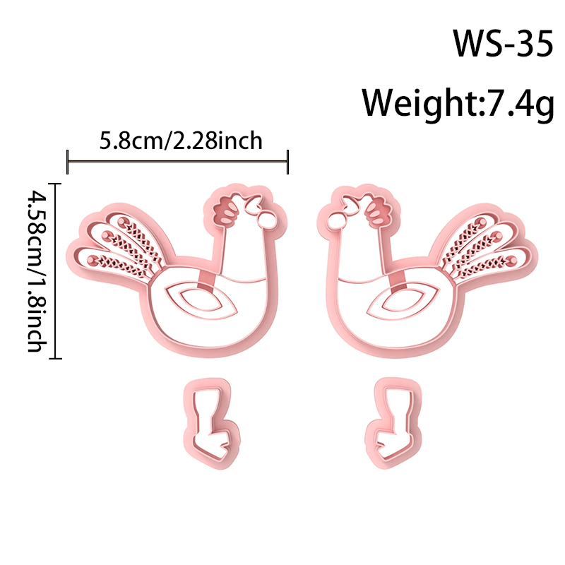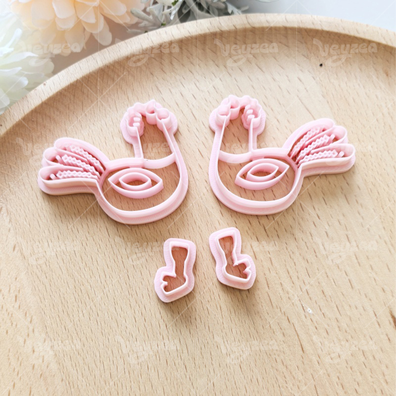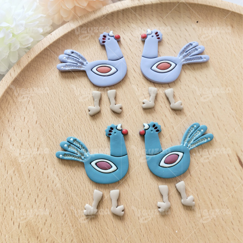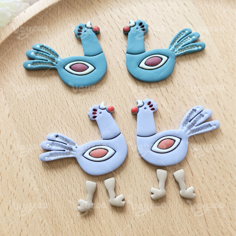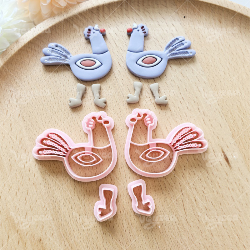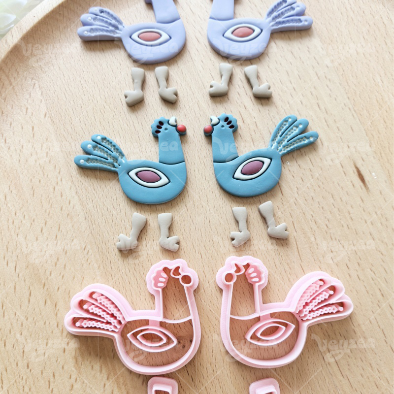 【 Funny Animal Cutters Set 】4 polymer clay earring cutters:Funny Animal Clay Cutters Set,Abstract Chicken Polymer Clay Earring Mold Clay Cutters,Contains An Abstract Chicken Body And Independent Leg Clay Cutters. The Shape Is Exaggerated And Interesting, With Unique Eye-Like Patterns And Feather Textures, Full Of Art And Childlike Interest.