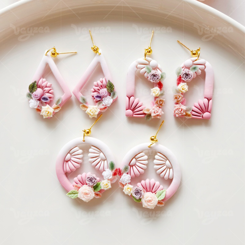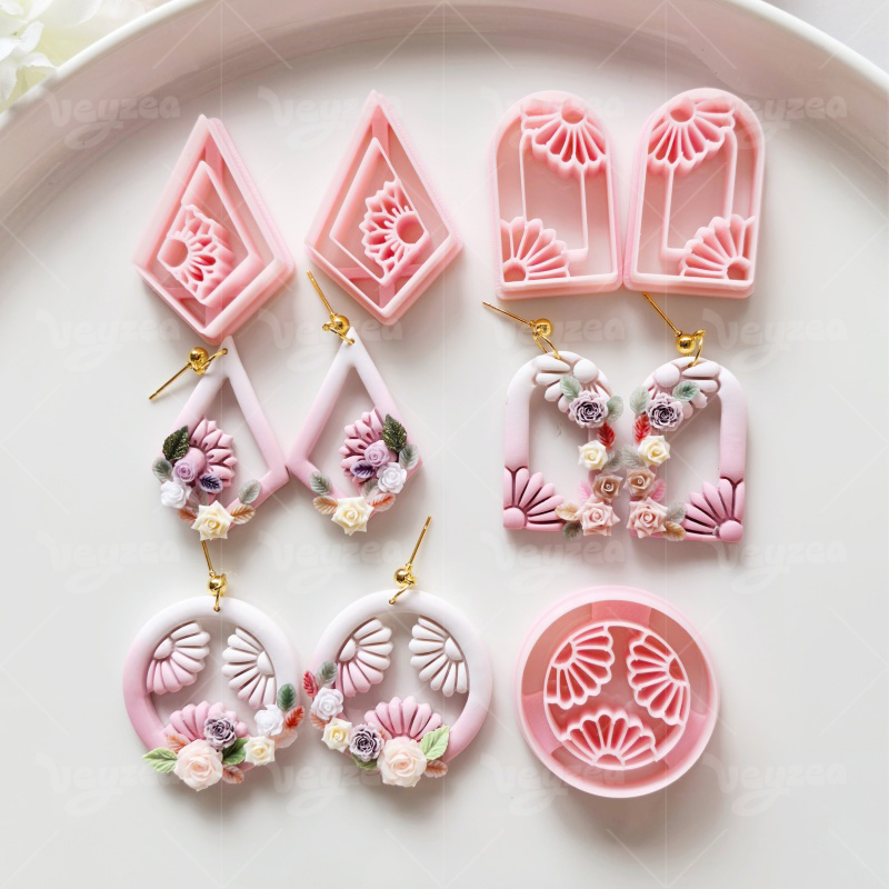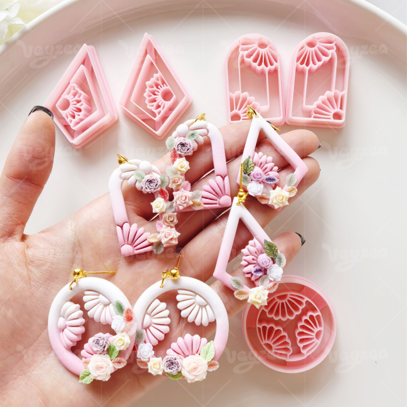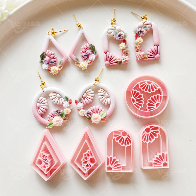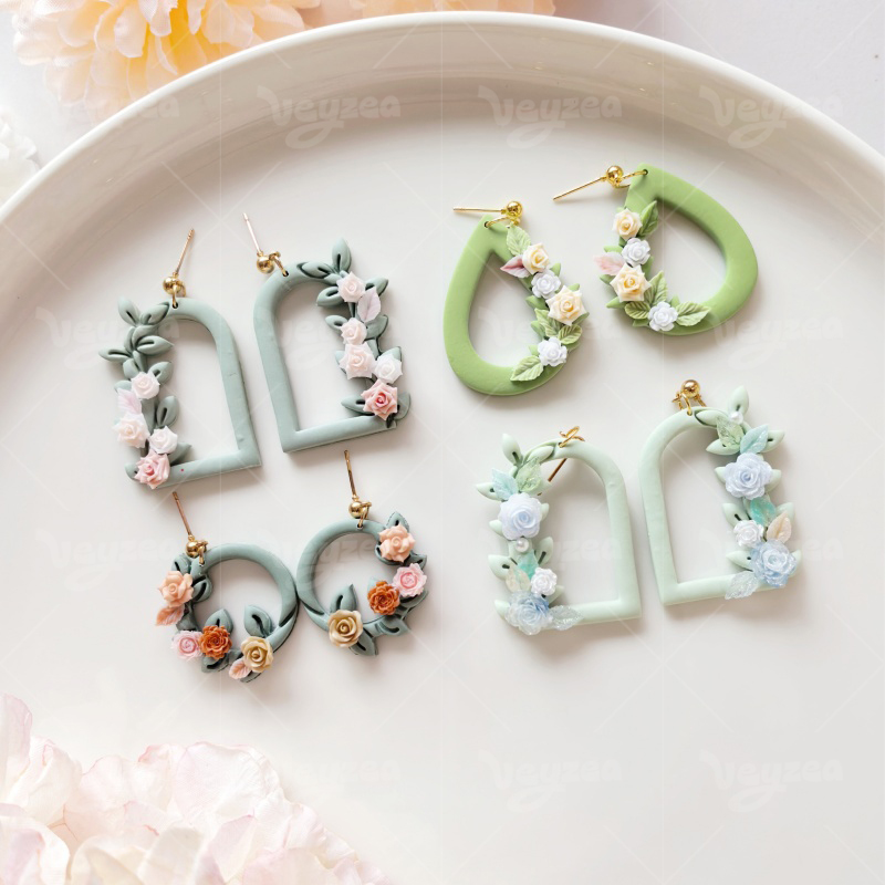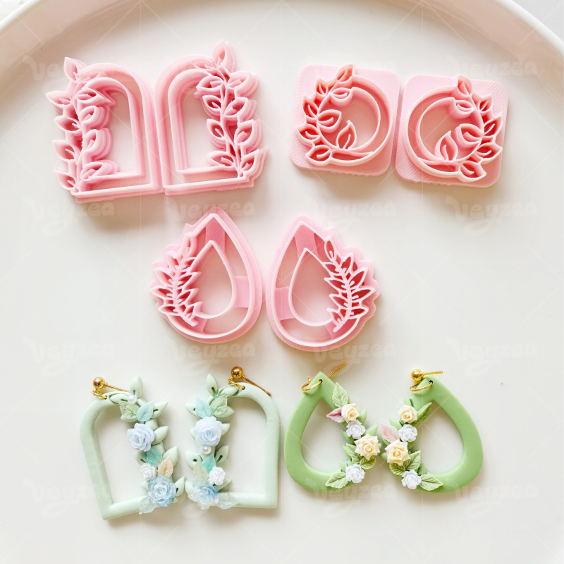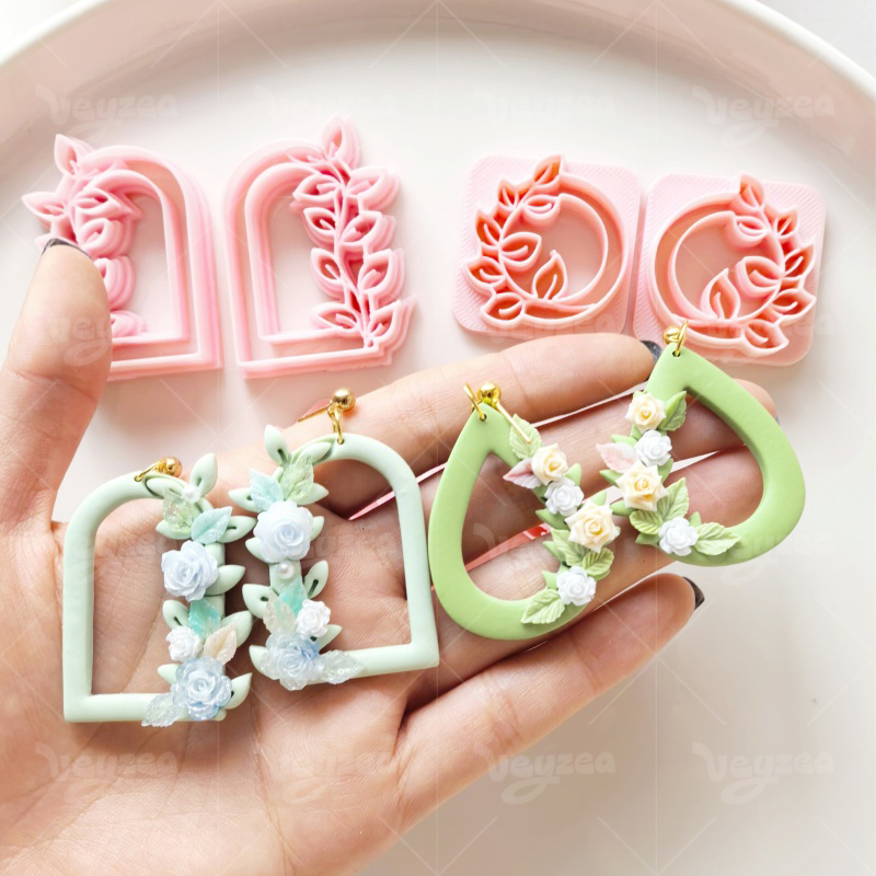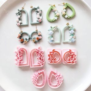 【 Garland Series Clay Cutters Set 】11 polymer clay earring cutters: Floral Geometric Polymer Clay Earring Mold, Flower Vine Clay Cutter, Arch/Tear Drop Shape Clay Earring Tool, Relief Pattern Design Clay Cutter