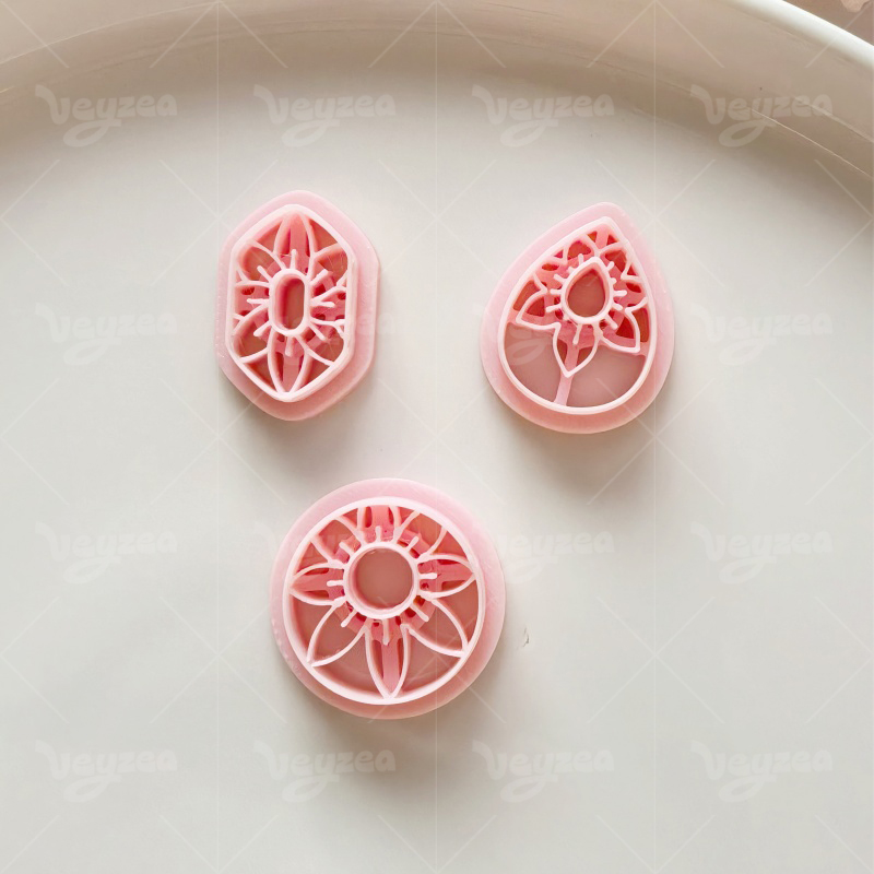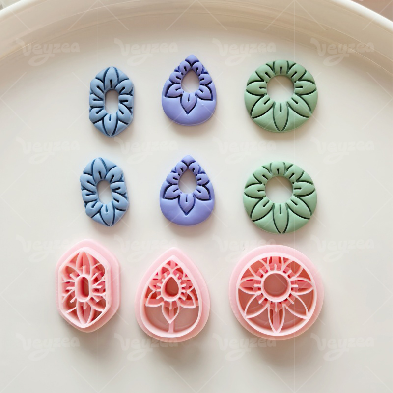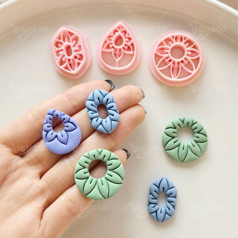【 Geometric Floral Pattern Cutters Set 】3 polymer clay earring cutters:Geometric Floral Clay Cutter Set Clay Cutters,Three-Dimensional Hollow Floral Texture Shape Clay Cutters,Hexagon Clay Cutters, Teardrop Clay Cutters, Circle Outline Clay Cutters.