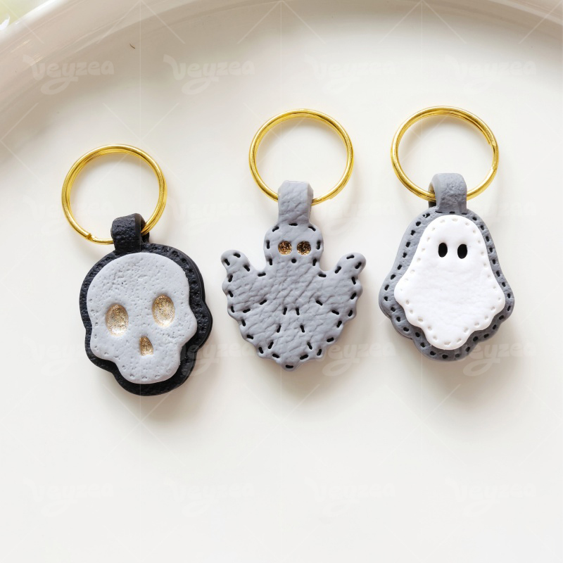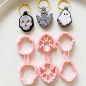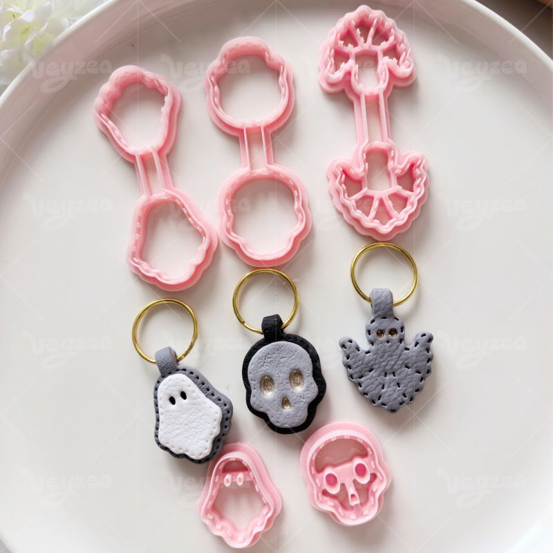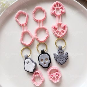 【 Halloween Keychain Cutters Set 】5 polymer clay earring cutters: Halloween Ghost Skull Keychain Polymer Clay Mold Clay Cutters,Including Ghost Clay Cutters, Skull Clay Cutters, Ghost And Skeleton Combination Clay Cutters, Etc, With Dark Yet Cute Designs.