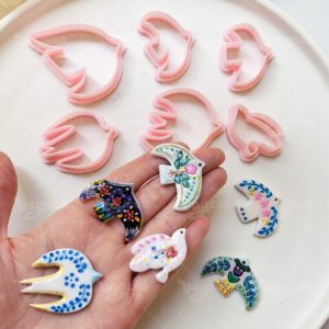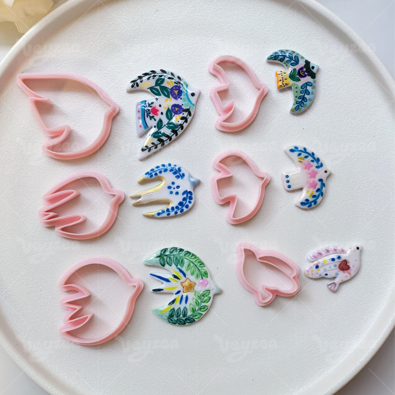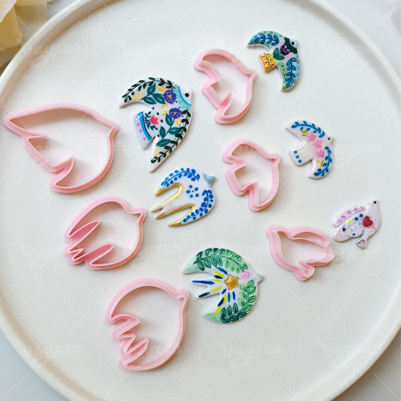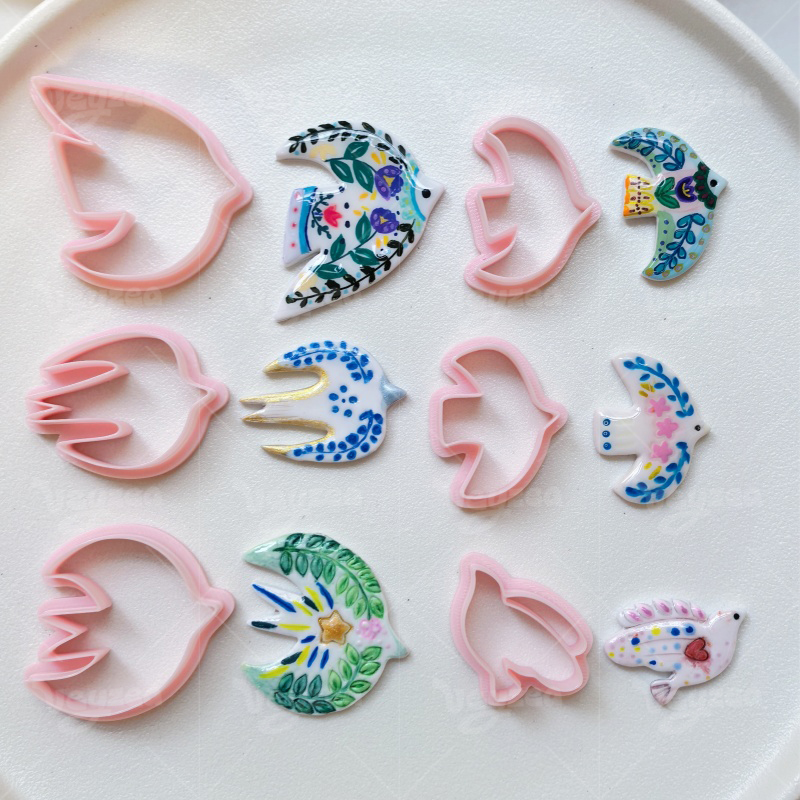 【 Bird Series Cutters Set 】6 polymer clay earring cutters:Hand Painted Bird Polymer Clay Earring Mold Clay Cutters,Folk Art Earring Clay Mold Clay Cutters,The Bird-Shaped Outline And Wing Texture Are Hand-Painted, Full Of Folk Customs And Art.