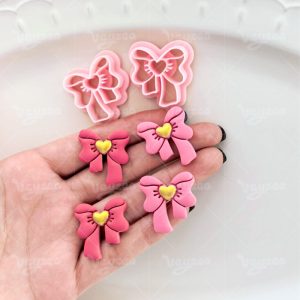【 Heart Shape Bow Cutters Set 】2 polymer clay earring cutters:Heart Shape Bow Polymer Clay Earring Mold Clay Cutters,Cute Bow Clay Cutter Set Clay Cutters,Contains A Pair Of Love Bow Clay Cutters, Rich In Layers, Full Of Design And Sweet Flavor.