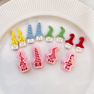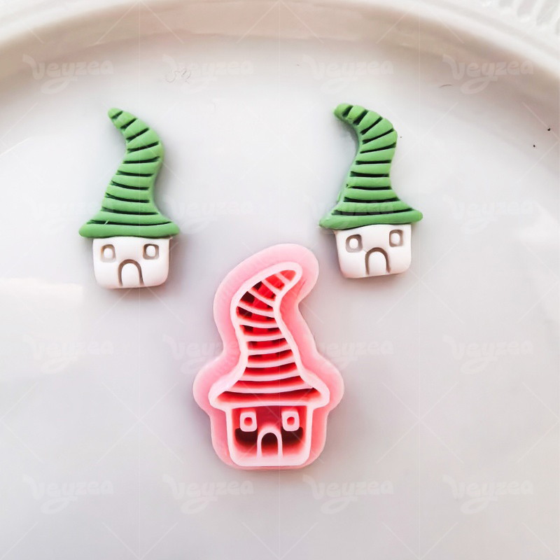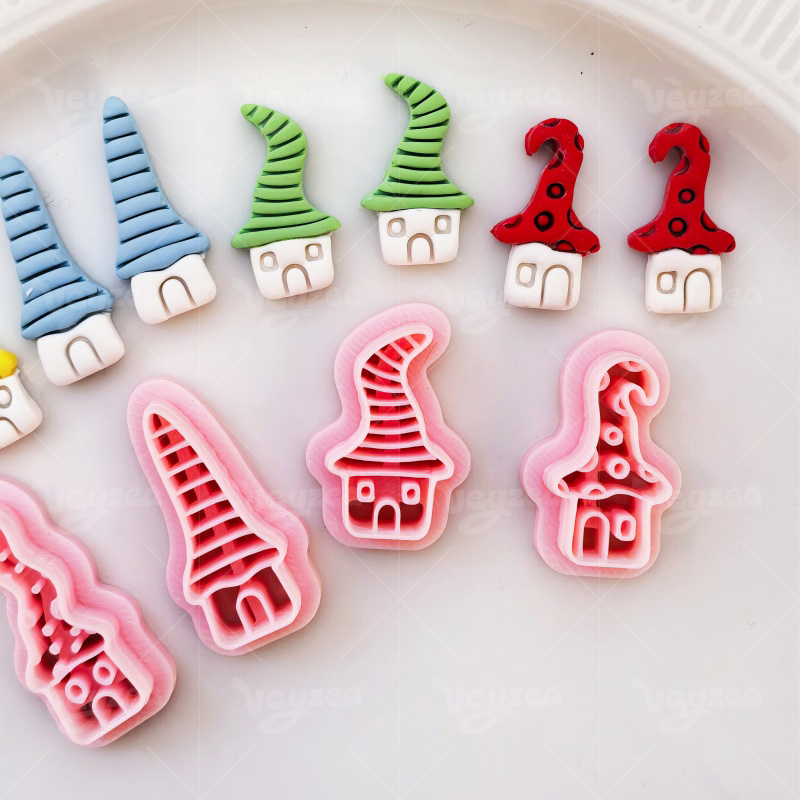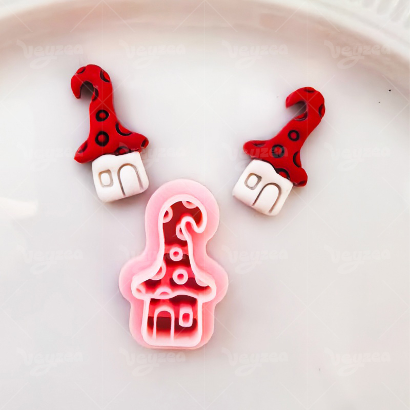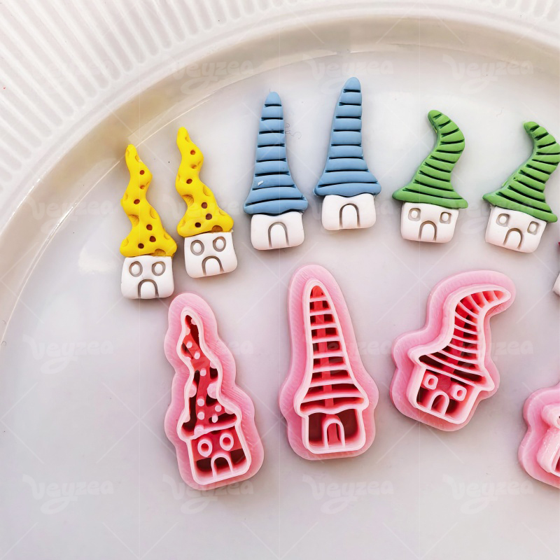 【 Fairy Tale Style Cutters Set 】4 polymer clay earring cutters:Elf Cabin Shape Clay Cutters,Cute Fairy Tale Forest Style Clay Cutters,Spotted Hat Hut Clay Cutters, Striped Hat Hut Clay Cutters, Crooked Hat Hut Clay Cutters, Crooked Hat Hut Clay Cutters.