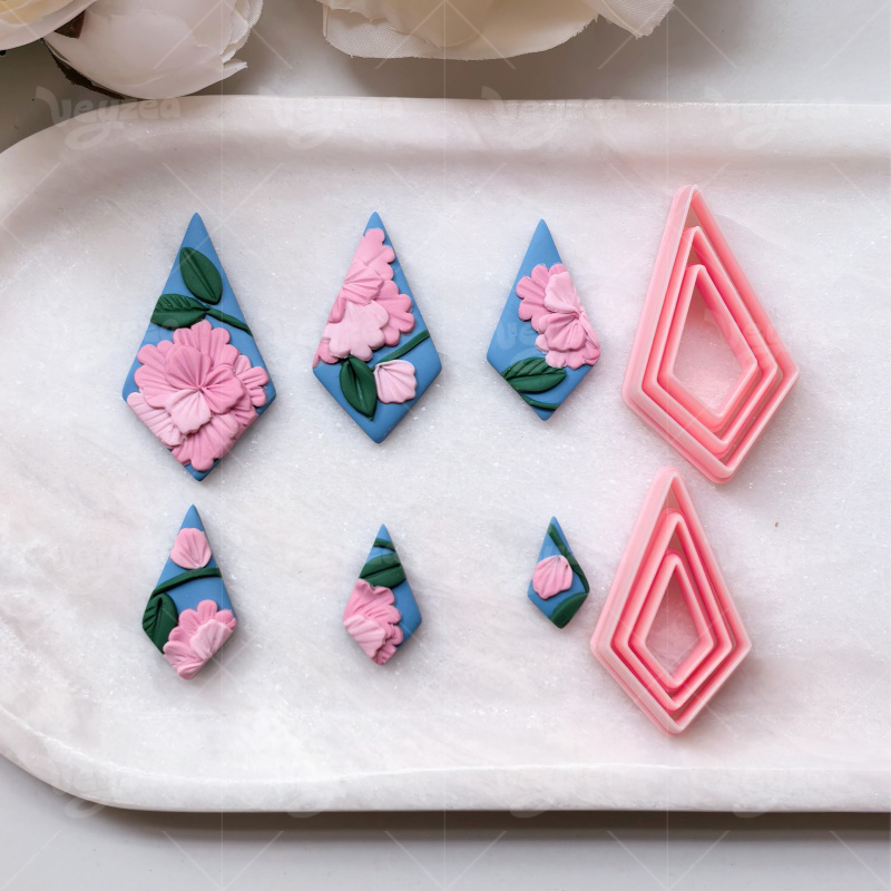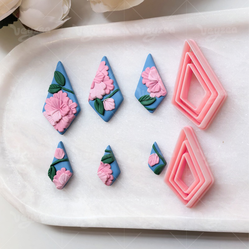 【 Irregular Rhombus Cutters Set 】6 polymer clay earring cutters:Irregular Rhombus Polymer Clay Earring Mold Clay Cutter, Simple Geometric Clay Cutter Set Clay Cutter, With Branches, Leaves, Flowers And Other Decorations, You Can Make Geometric Earrings With Rich Layers.