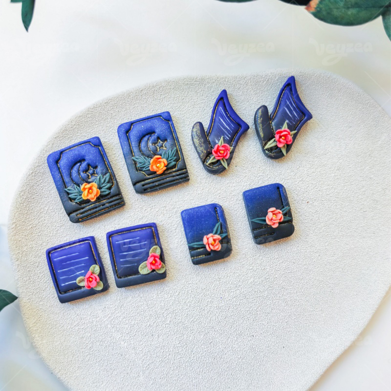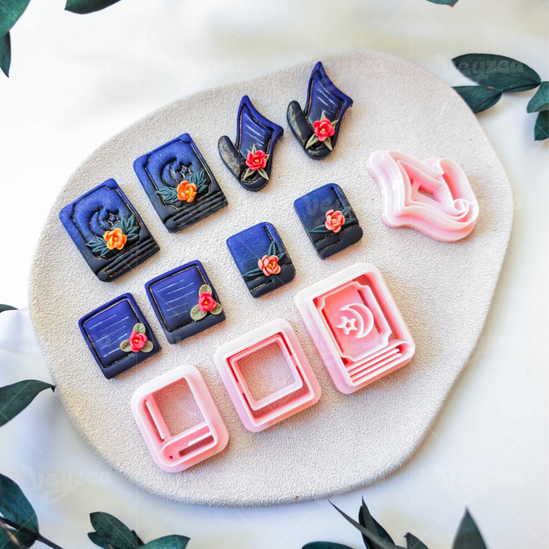 【 Magic Book Cutters Set 】4 polymer clay earring cutters:Six Pointed Star Polymer Clay Earring Mold Clay Cutters,Scroll Clay Knife Set Clay Cutters,Magic book shape Clay Cutters,Scroll pattern and floral details Clay Cutters.