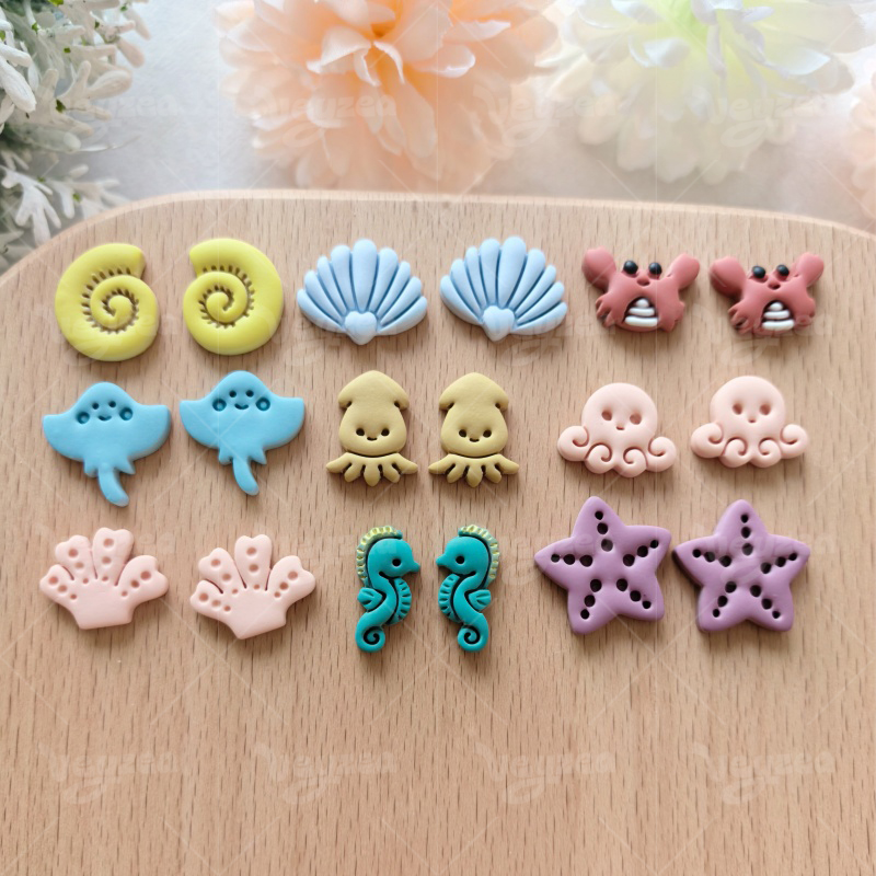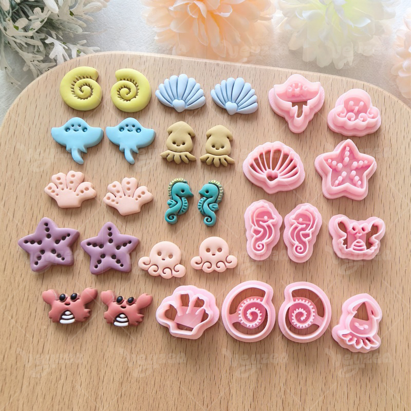 【 Marine Biopolymer Clay Cutters Set 】11 polymer clay earring cutters:Marine Biopolymer Clay Earring Mold Clay Cutters,Multi-Style Marine Element Clay Knife Set Clay Cutters,Conches Clay Cutters, Shells Clay Cutters, Rays Clay Cutters, Octopus Clay Cutters, Crabs Clay Cutters, Seahorses Clay Cutters, Starfish Clay Cutters, Etc.