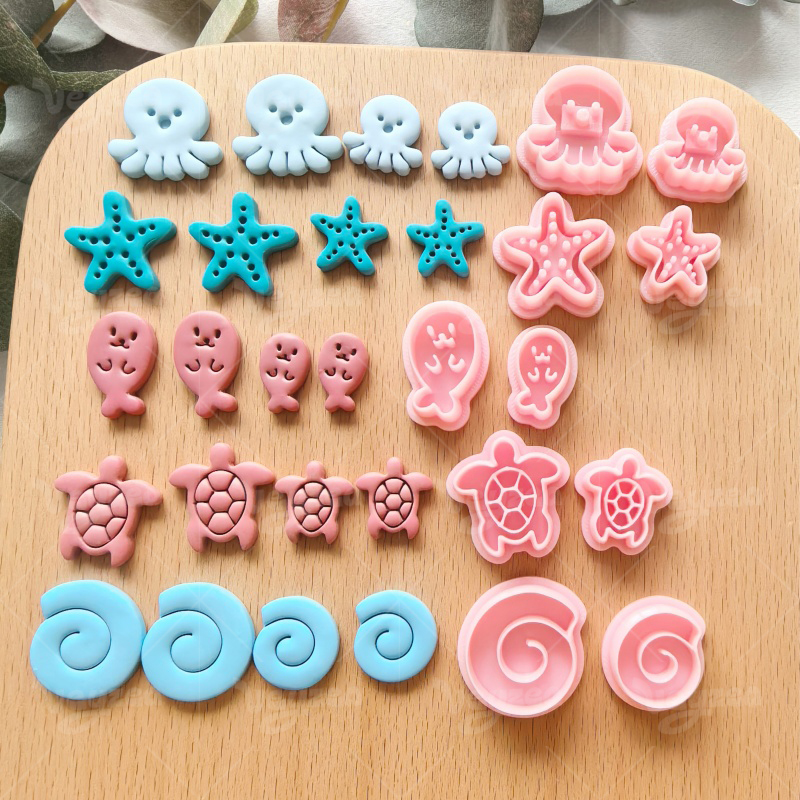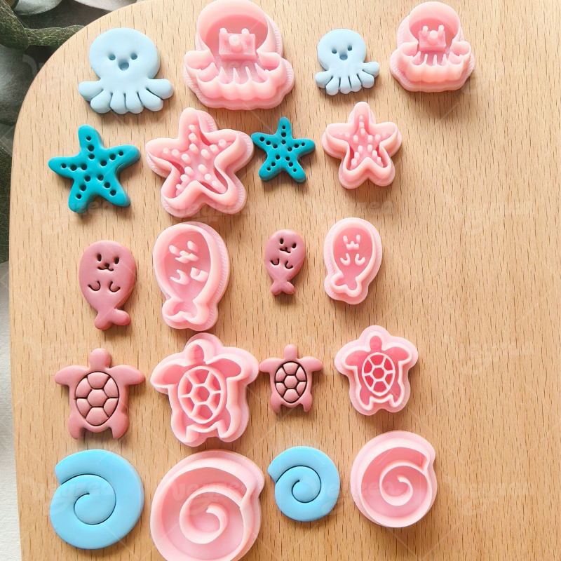 【 Marine Biopolymer Series Clay Cutters Set 】10 polymer clay earring cutters:Cute Marine Biopolymer Clay Earring Mold Clay Cutters,Ocean Themed Clay Cutter Set Clay Cutters,Conch Clay Cutters, Seal Clay Cutters, Octopus Clay Cutters, Starfish Clay Cutters, Turtle Clay Cutters.