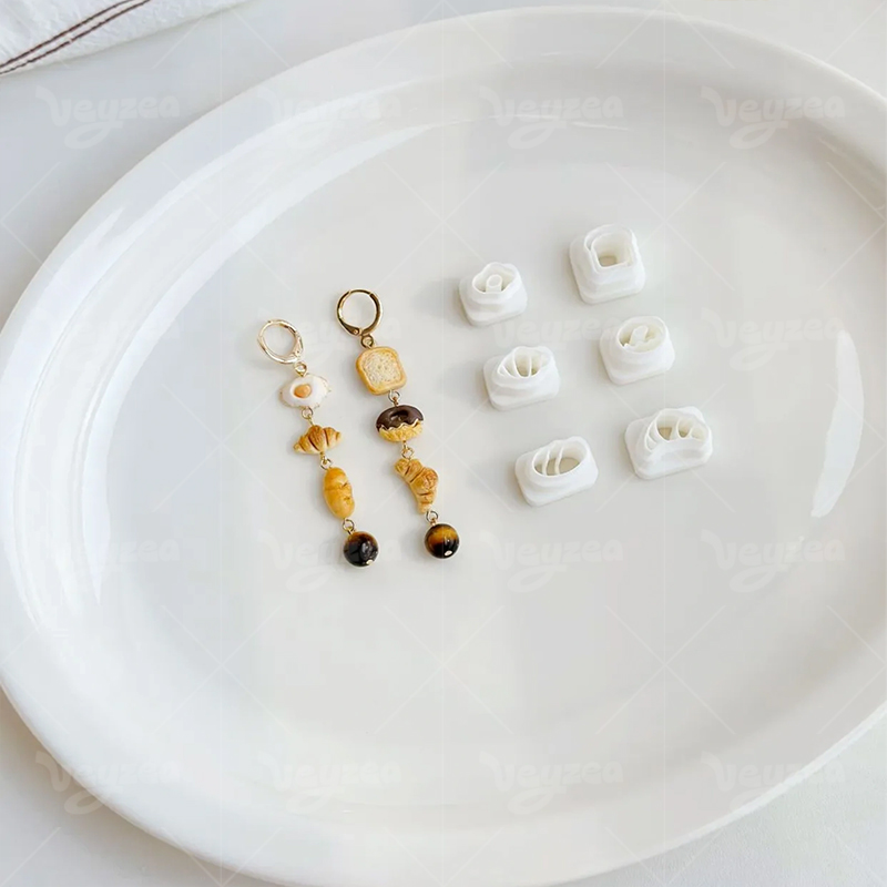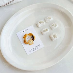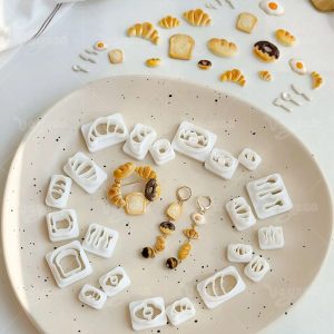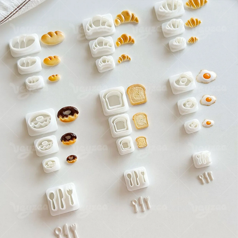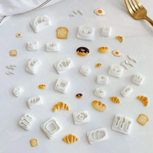 Mini Bread & Breakfast Clay Cutters Set: Create realistic croissant, toast, donut, fried egg, and utensil shapes for polymer clay crafts.