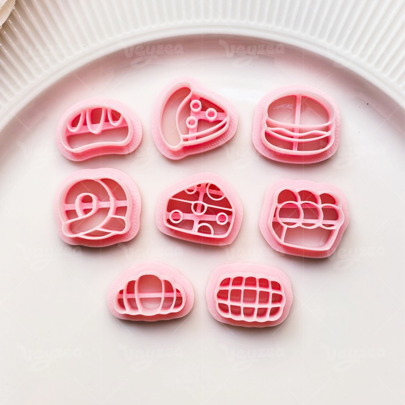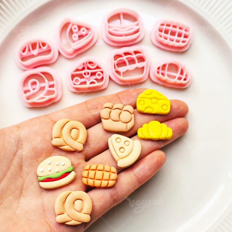 【 Mini Food Cutters Set 】8 polymer clay earring cutters:Mini Food Polymer Clay Earring Mold Clay Cutters,Bakery Fast Food Clay Knife Set Clay Cutters,Includes Mini Burgers Clay Cutters, Croissants Clay Cutters, Cheese Clay Cutters, Pretzels Clay Cutters, Buns Clay Cutters And More.