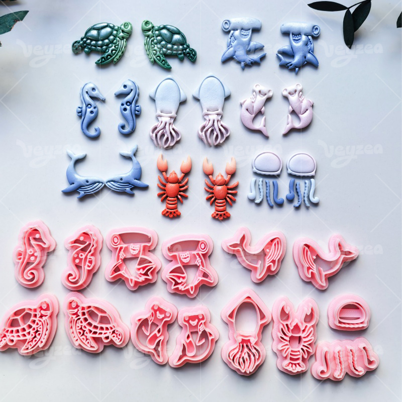 【 Ocean Series Cutters Set 】14 polymer clay earring cutters:Ocean Themed Clay Cutter Set Clay Cutters,Multi-Style Marine Animal Clay Cutting Mold Set Clay Cutters,Turtles Clay Cutters, Lobsters Clay Cutters, Jellyfish Clay Cutters, Seahorses Clay Cutters, Squid Clay Cutters, Whales Clay Cutters, Etc.