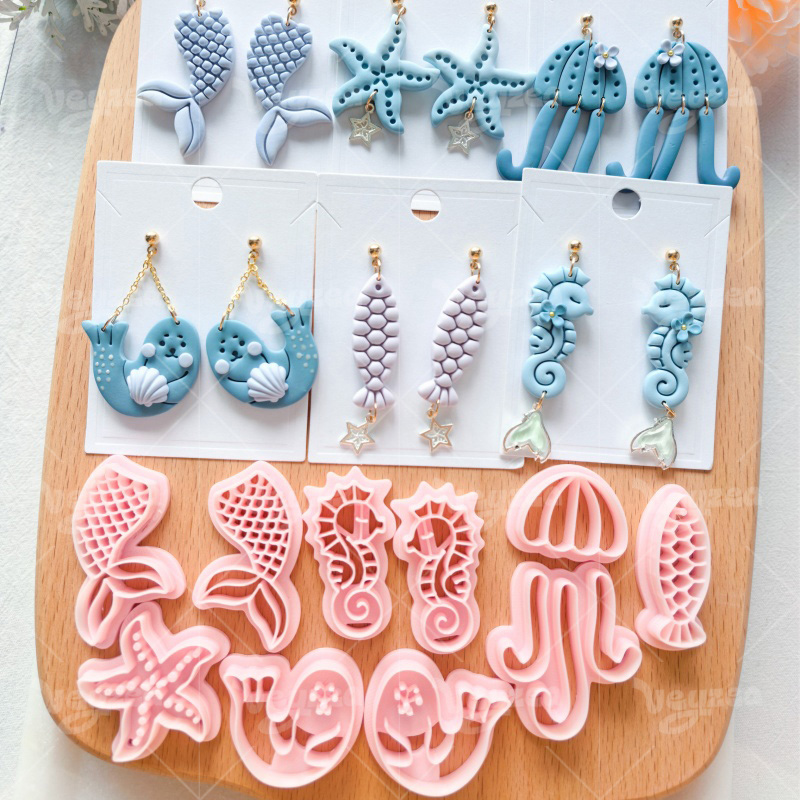 【 Ocean Themed Clay Cutters Set 】10 polymer clay earring cutters:Marine Biopolymer Clay Earring Mold Clay Cutters,Ocean Themed Clay Cutter Set Clay Cutters,Seahorse Clay Cutters, Starfish Clay Cutters, Jellyfish Clay Cutters, Fish Tail Clay Cutters, Seal Clay Cutters, Small Fish Clay Cutters.