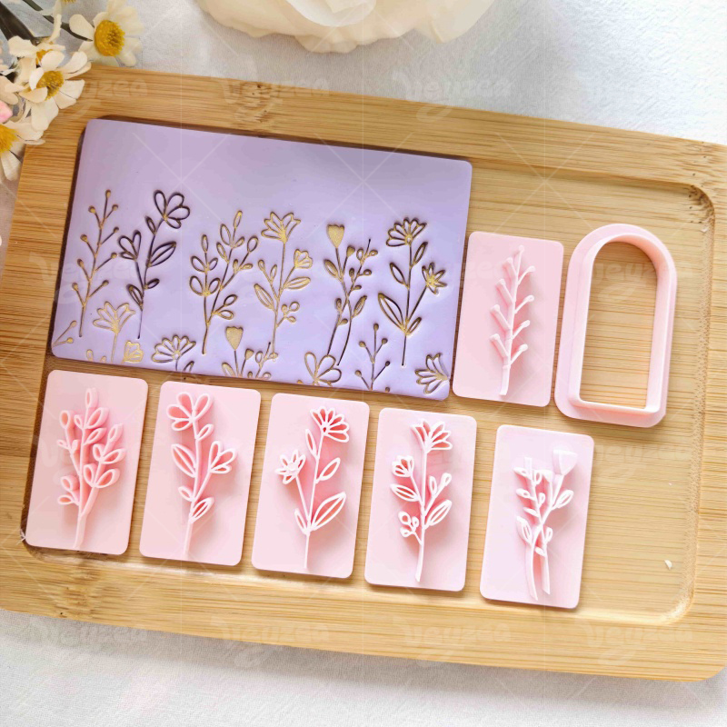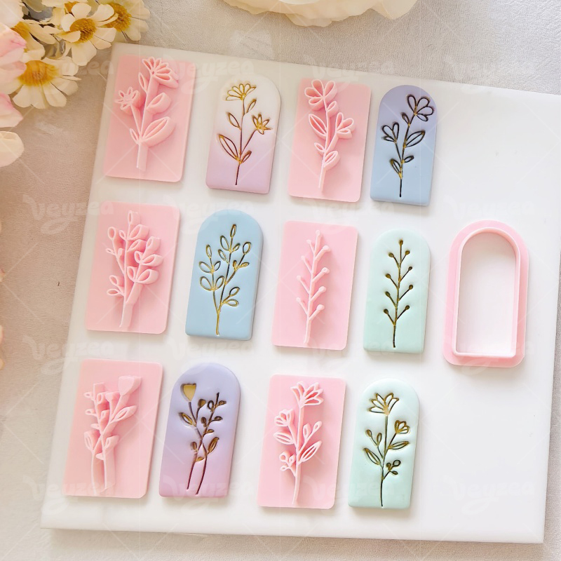 【 Plant seal series Cutters Set 】7 polymer clay earring cutters:Plant Flower Polymer Clay Earring Stamp Mold Clay Cutters,Fresh Art Earrings Clay Stamp Mold Clay Cutters,Contains A Variety Of Flower And Leaf Textures, Full Of Natural Freshness And Artistic Feel.