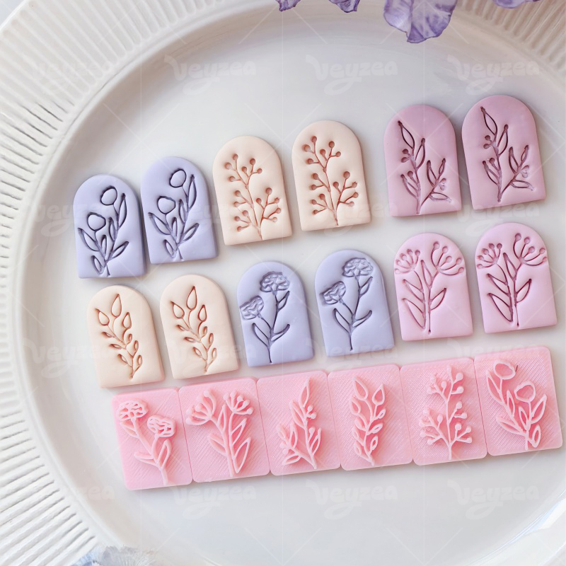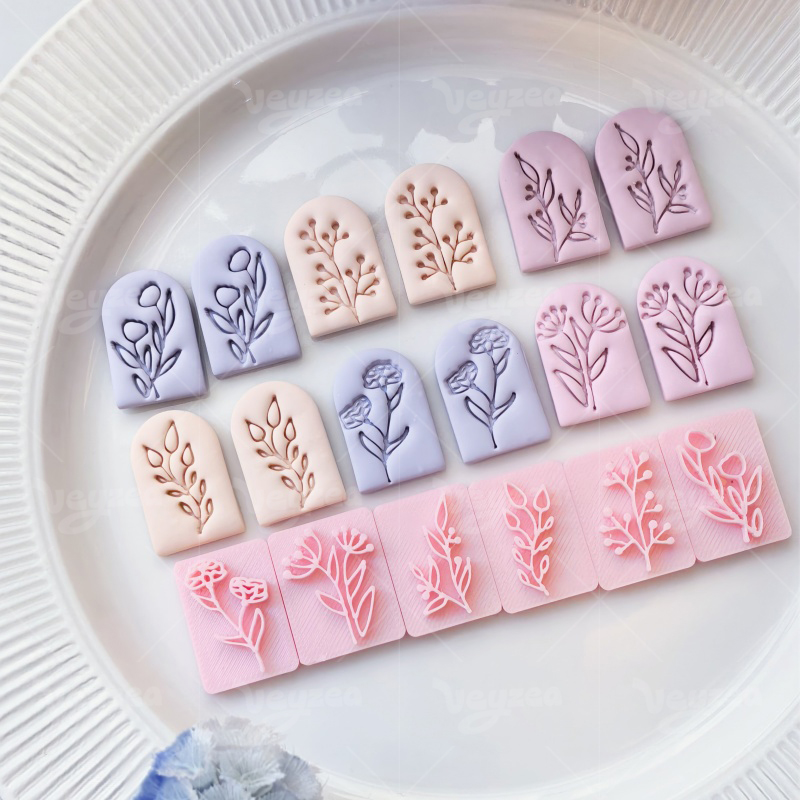 【 Rectangular Floral Textured seal series Cutters Set 】6 polymer clay earring cutters:Rectangular Floral Textured Polymer Clay Earring Stamp Mold Clay Cutters,Botanical Art Earrings Clay Stamp Mold Clay Cutters,Contains A Variety Of Flower Branch And Leaf Textures, Such As Single Florets, Cluster Leaves, Pinnate Leaves, Etc.
