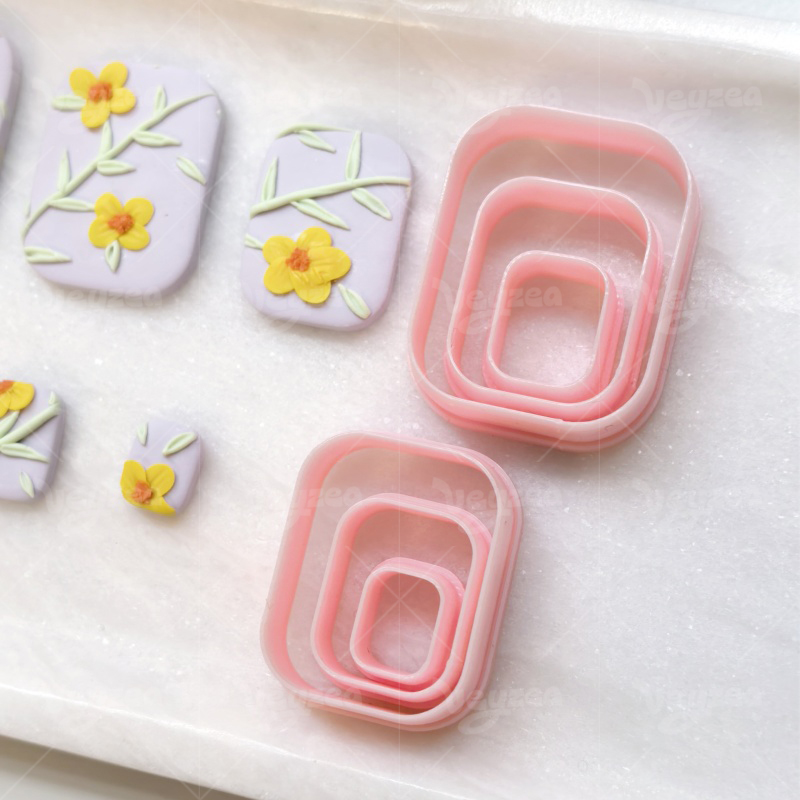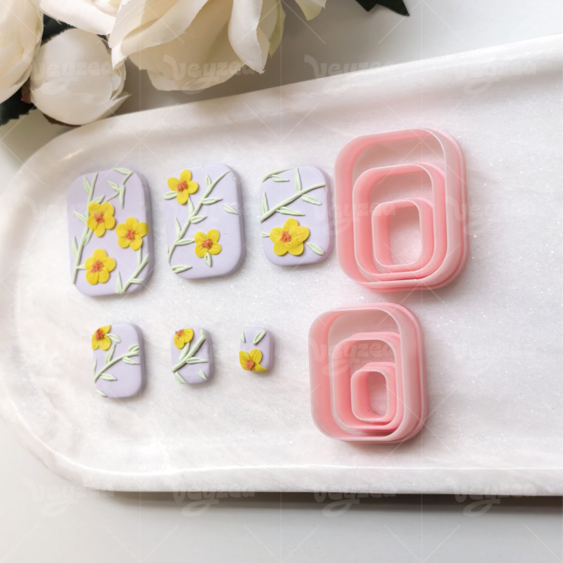 【 Rounded Rectangular Cutters Set 】6 polymer clay earring cutters:Rounded Rectangular Polymer Clay Earring Mold Clay Cutters,Multi-Size Rounded Rectangles, Matched With Flowers, Branches And Leaves, Etc., Can Create Richly Layered Earrings.