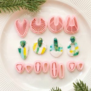 【 Geometric Outline Cutters Set 】12 polymer clay earring cutters:Scalloped Gemstone Inlaid Polymer Clay Earring Mold Clay Cutters,Scalloped Textured Clay Knife Set Clay Cutters,Art Earrings Clay Mold Clay Cutters,Sector-Shaped Clay Cutters, U-Shaped Clay Cutters And Other Contours.