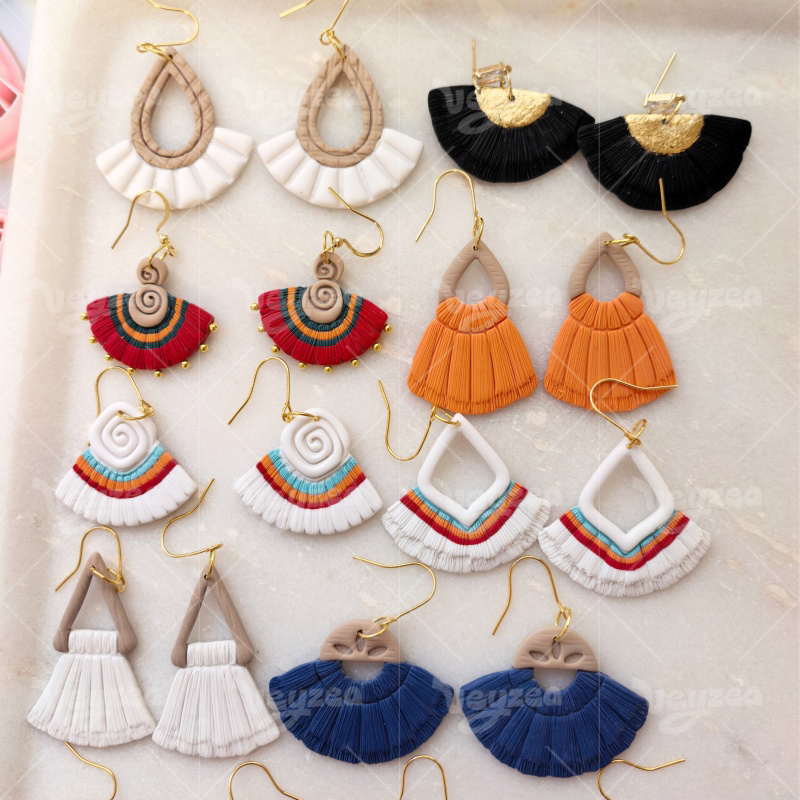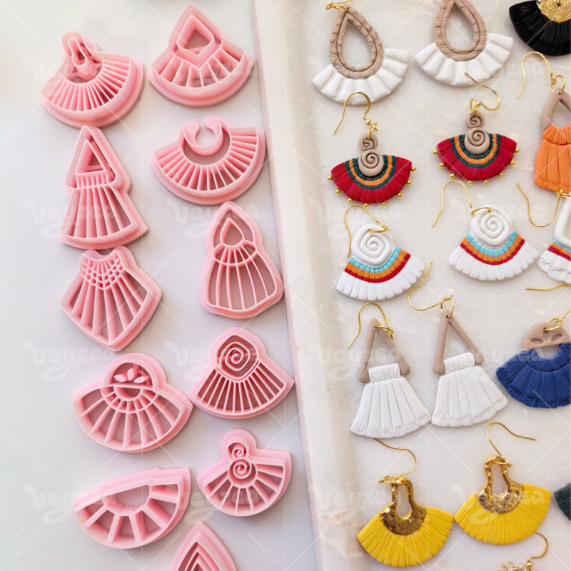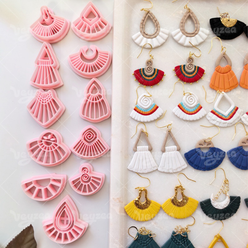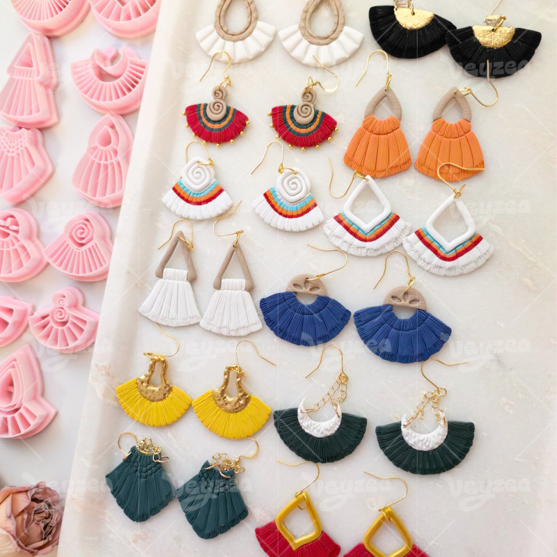 【 Scalloped Tassel Cutters Set 】11 polymer clay earring cutters:Scalloped Tassel Polymer Clay Earring Mold Clay Cutters,Various Styles Of Scalloped Tassels Clay Cutters,Contains A Variety Of Clay Cutters Such As Triangles, Semicircles, Drop-Shaped, Irregular Sector Shapes, Etc.