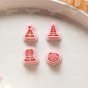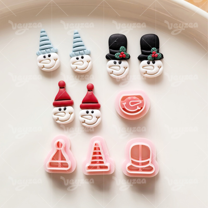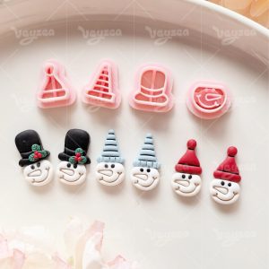 【 Snowman Head Series Cutters Set 】4 polymer clay earring cutters:Snowman Head Polymer Clay Earring Mold Clay Cutters,Including Striped Pointed Hats, Christmas Hats, Top Hats And Other Styles Of Hats, Matched With Snowman Heads, Rich In Layers, Full Of Design And Festive Atmosphere.