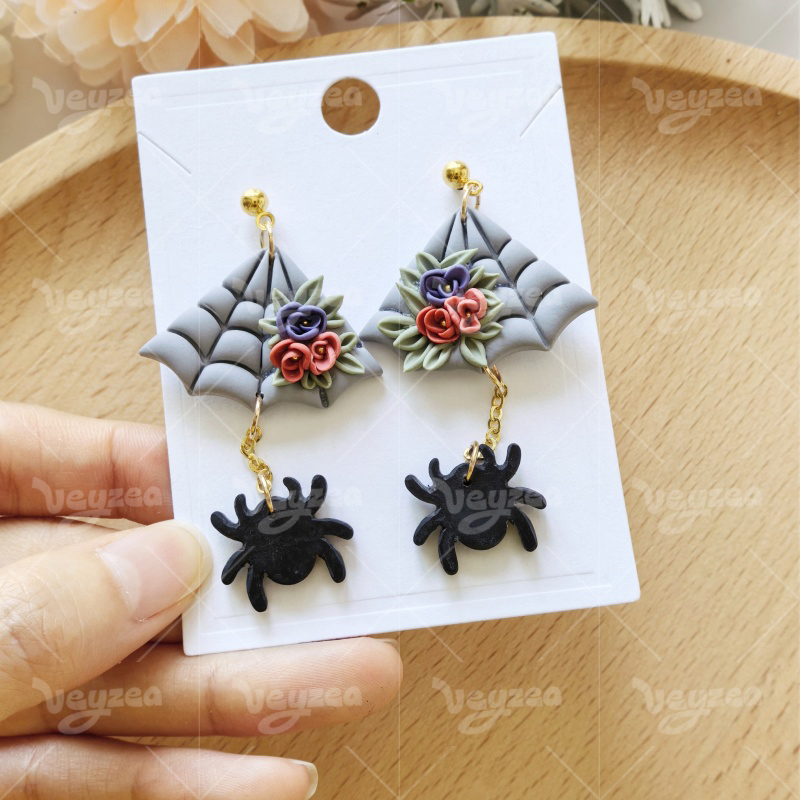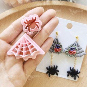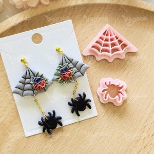 【 Spider Cutters Set 】2 polymer clay earring cutters:Halloween Clay Cutters Set Clay Cutters,It Includes Two Types Of Clay Cutters: Triangular Spider Web And Spider. The Spider Web Has A Clear Grid Texture And Can Be Paired With Three-Dimensional Flowers And Other Decorations To Make It Full Of Design And Festive Atmosphere.