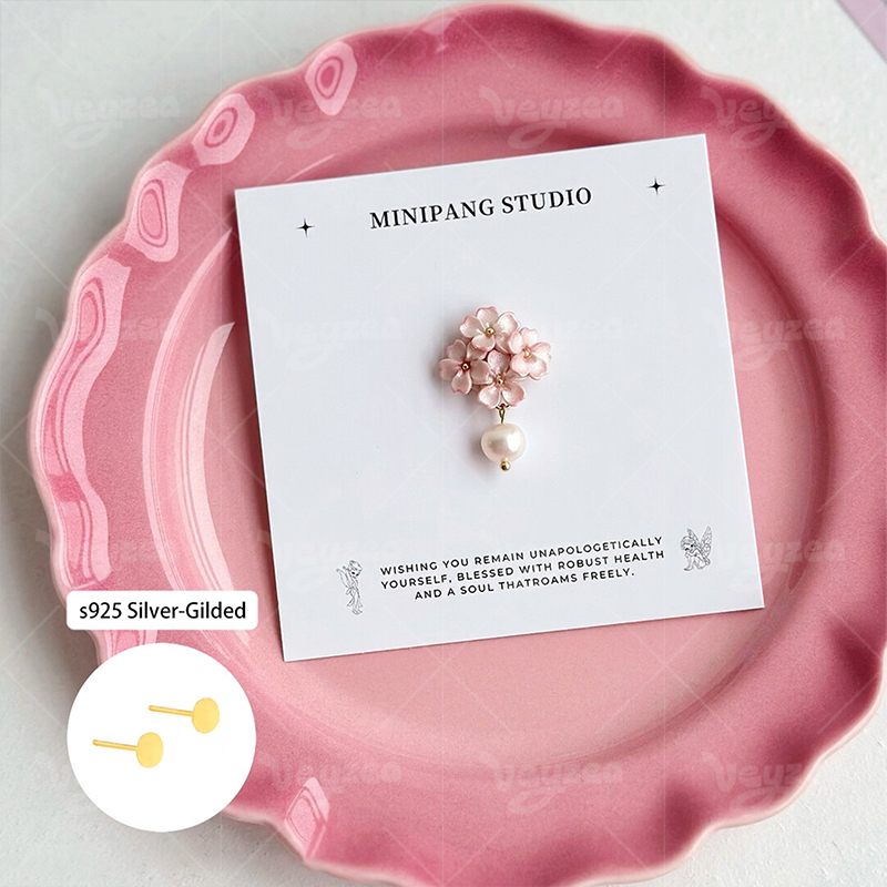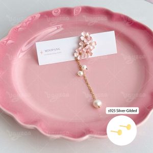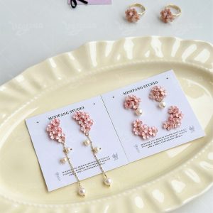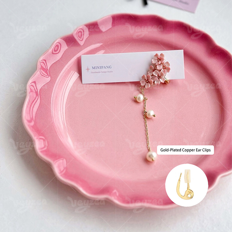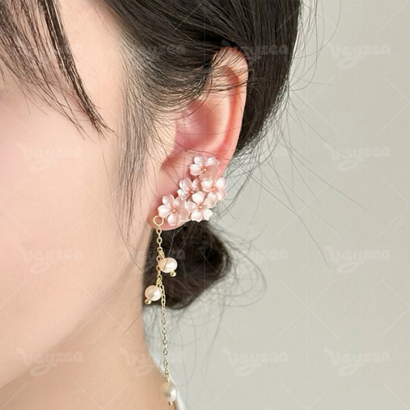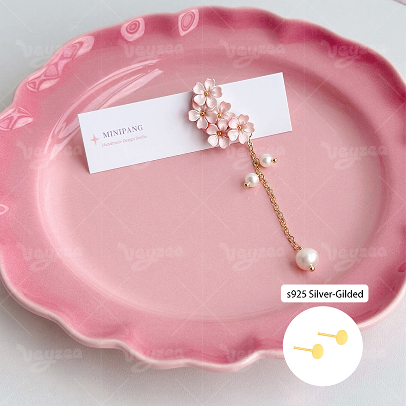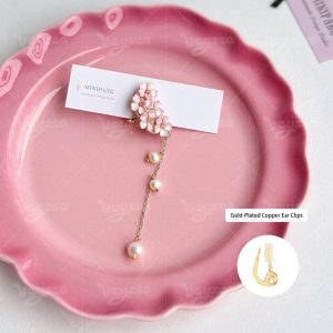 Spring Cherry Blossom Design: Handmade polymer clay earrings with delicate pink cherry blossom clusters for a romantic spring vibe.Features dainty gold chains and faux pearl drops for a feminine, eye-catching tassel effect.