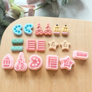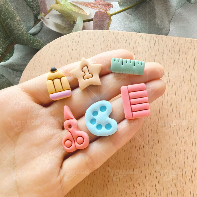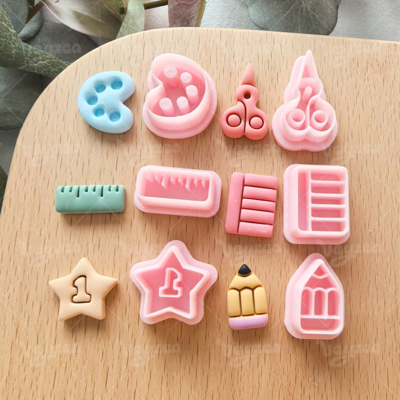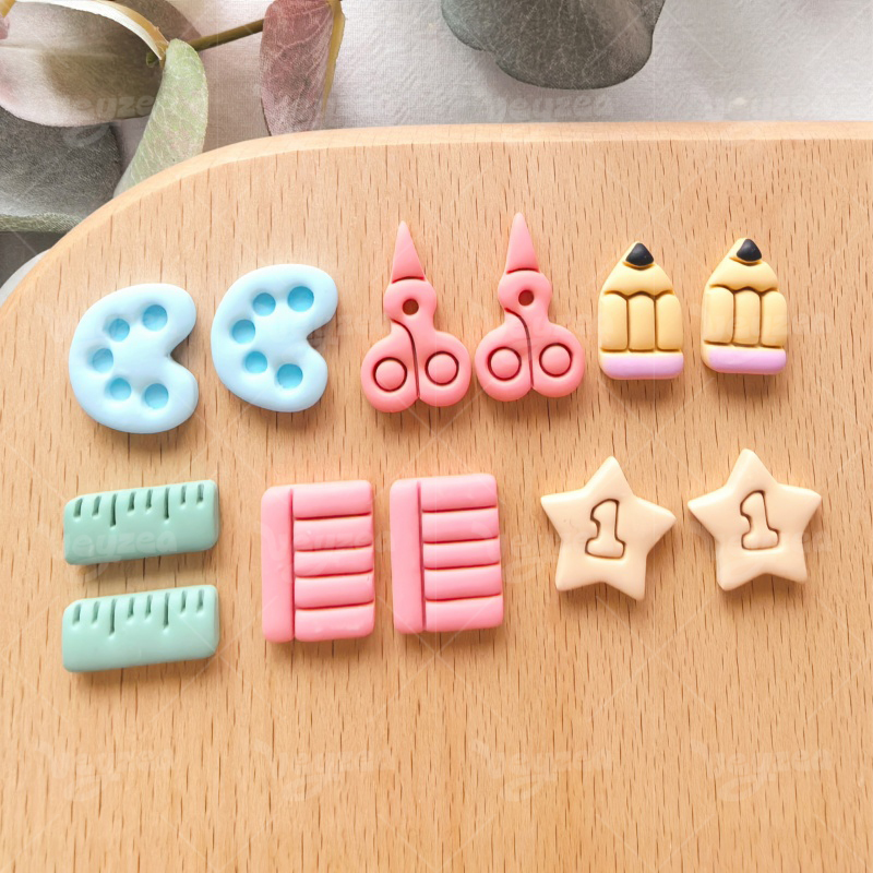 【 Stationery Series Clay Cutters Set 】6 polymer clay earring cutters:Stationery Polymer Clay Earring Mold Clay Cutters,Art Themed Clay Cutter Set Clay Cutters,Creative Earring Clay Mold Clay Cutters,Scissors Clay Cutters, Pencil Clay Cutters, Star Clay Cutters, Notepad Clay Cutters, Ruler Clay Cutters, Paint Tray Clay Cutters.