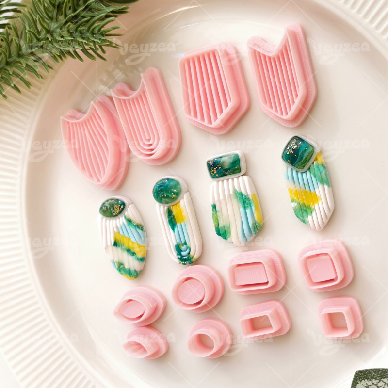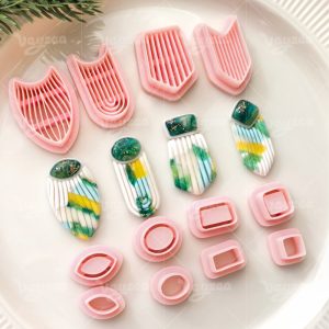 【 Striped Gemstone Cutters Set 】12 polymer clay earring cutters:Striped Gemstone Inlaid Polymer Clay Earring Mold Clay Cutters,Striped Textured Clay Knife Set Clay Cutters,Include Shield-Shaped, U-Shaped, V-Shaped And Other Contours Clay Cutters.