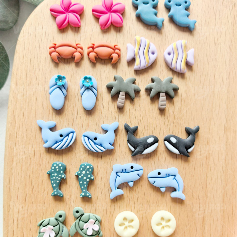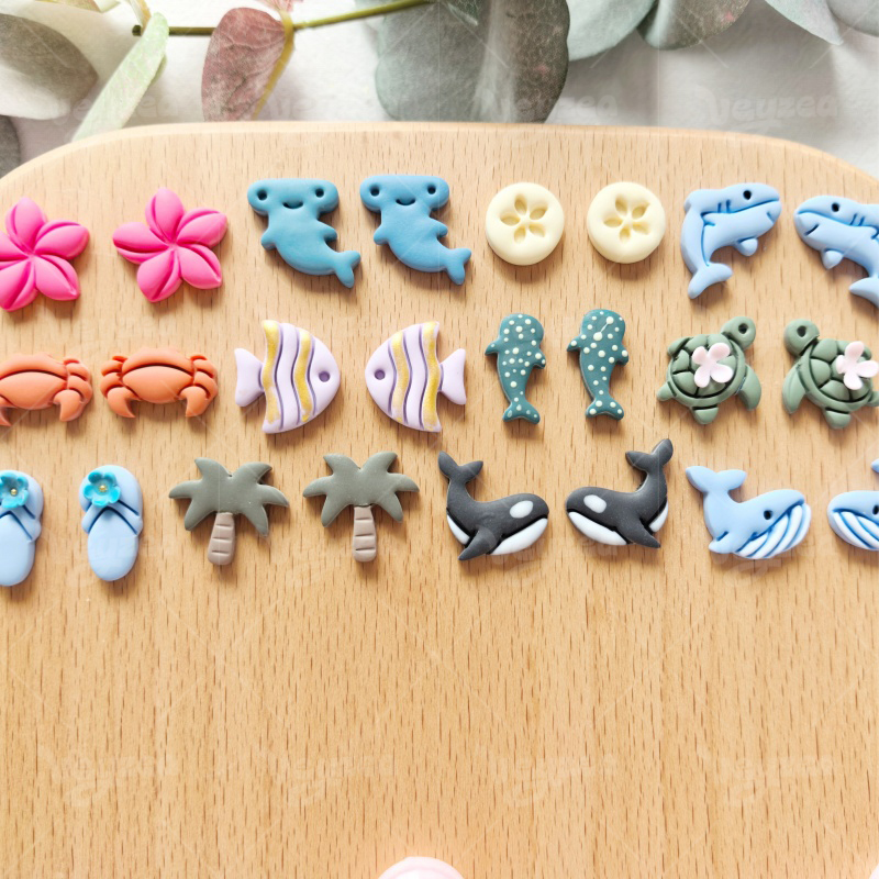 【 Summer Beach Series Clay Cutters Set 】17 polymer clay earring cutters:Marine Biopolymer Clay Earring Mold Clay Cutters,Summer Beach Earrings Clay Mold Clay Cutters,Whales Clay Cutters, Turtles Clay Cutters, Killer Whales Clay Cutters, Sharks Clay Cutters, Crabs Clay Cutters, Coconut Trees Clay Cutters, Etc.