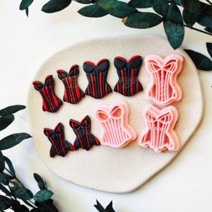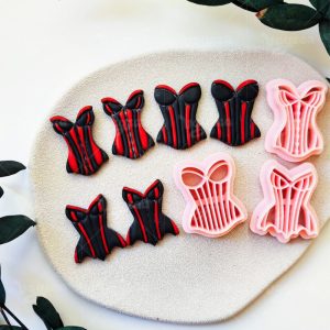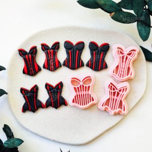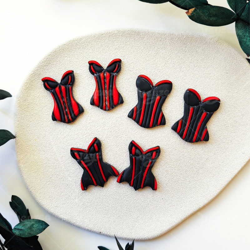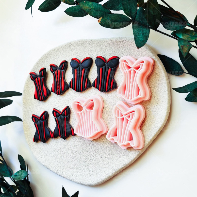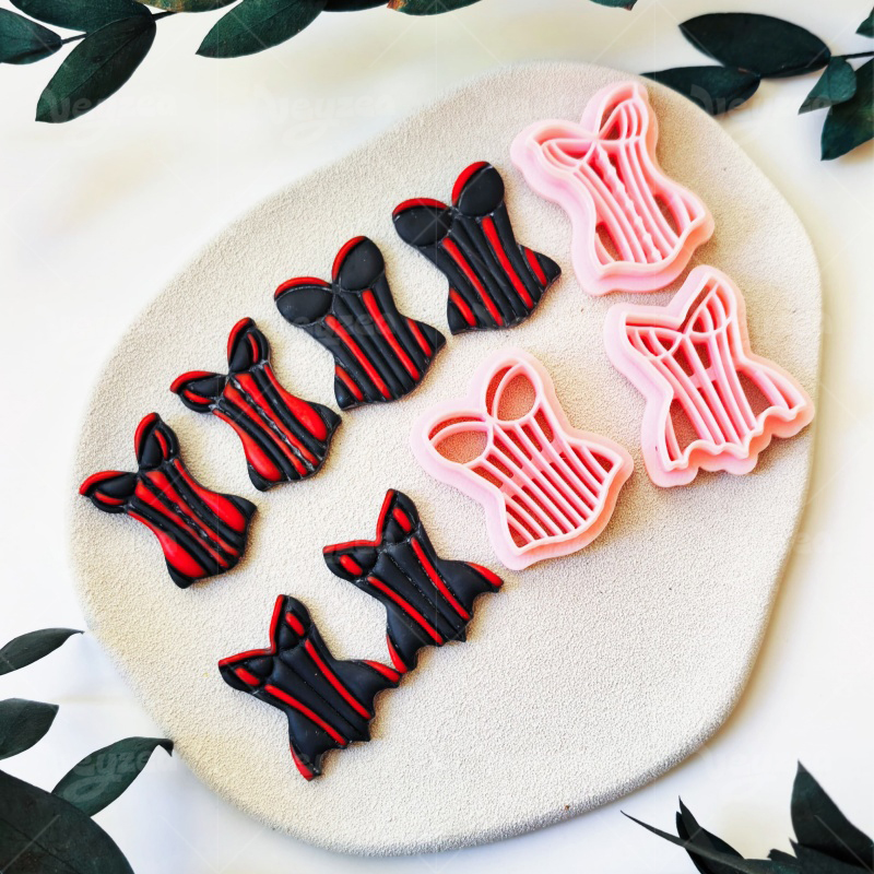【 Swimsuit Series Cutters Set 】3 polymer clay earring cutters:Swimsuit Polymer Clay Earring Mold Clay Cutters,Vintage Corset Polymer Clay Mold Clay Cutters,Different Styles Of Retro Corsets With Classic Vertical Stripe Textures.