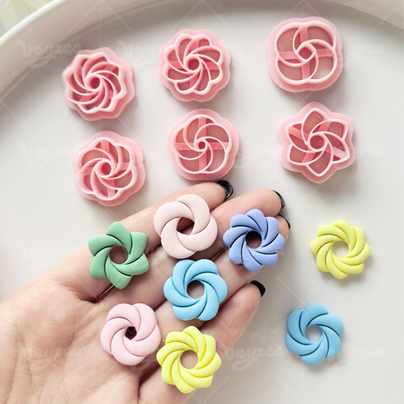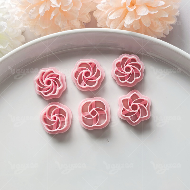 【 Swirl Floral Cutters Set 】6 polymer clay earring cutters:Swirl Floral Polymer Clay Earring Mold Clay Cutters,Cute Floral Earrings Clay Mold Clay Cutters,Three-Dimensional Rotating Texture Modeling Clay Cutters,Multiple Styles Of Rotating Patterns Clay Cutters.