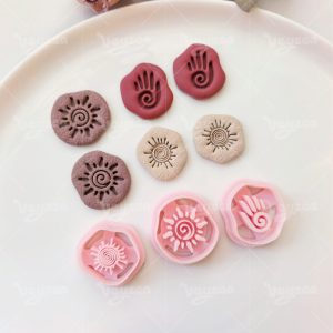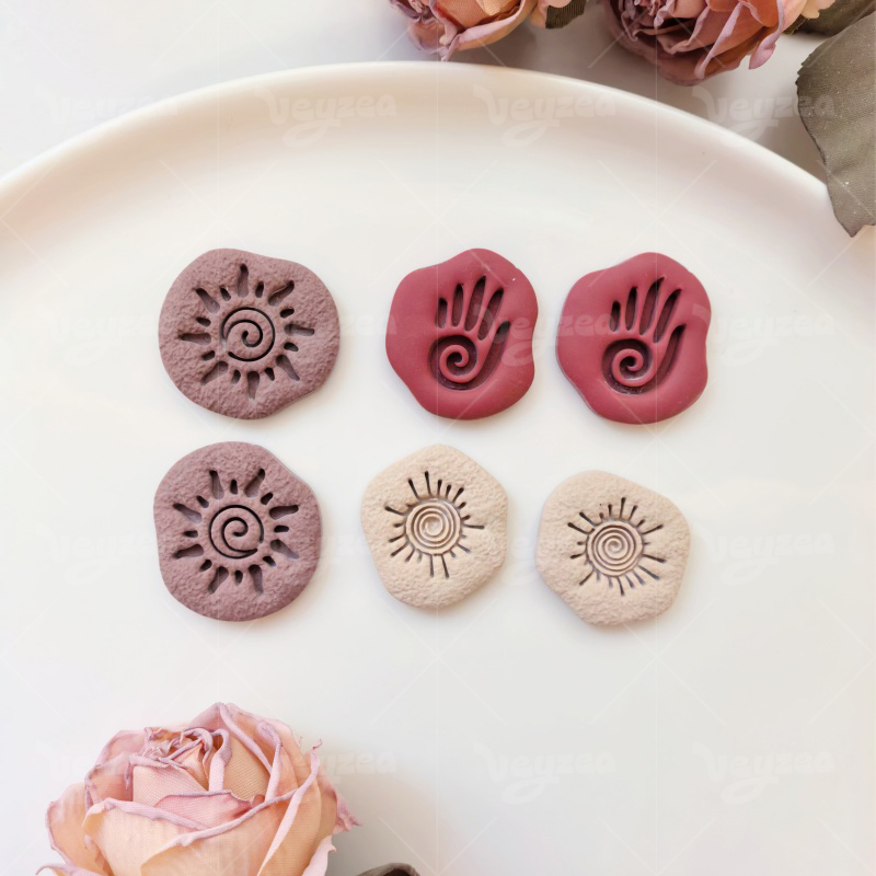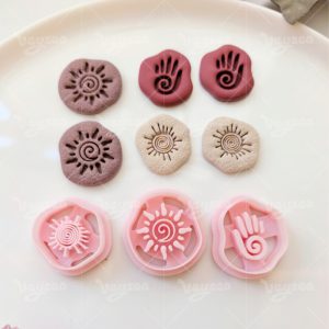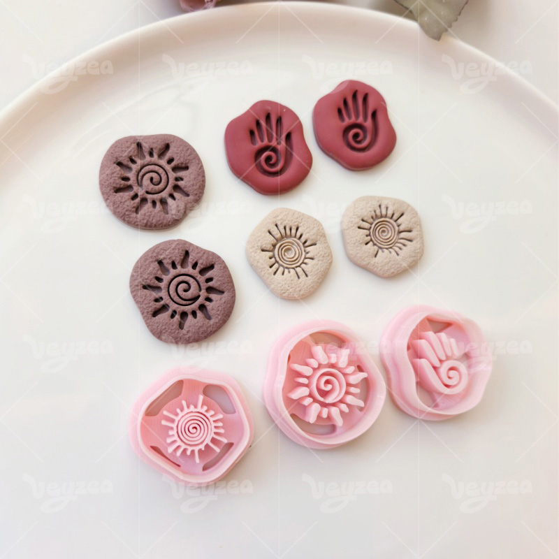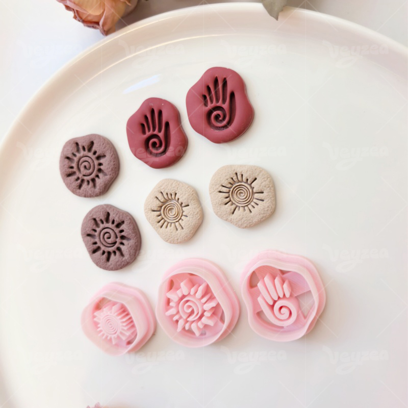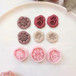 【 Tribal Totem Cutters Set 】3 polymer clay earring cutters:Tribal Totem Polymer Clay Earring Mold Clay Cutters,Retro Symbol Clay Knife Set Clay Cutters,Including Spiral Sun Pattern, Palm Print And Other Totem Cutting Dies.