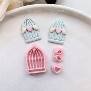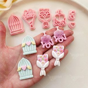 【Valentine’s Day Bouquet Series Cutters Set 】6 polymer clay earring cutters:Valentine’s Day Bouquet And Heart Birdcage Polymer Clay Earring Mold Clay Cutters,Fresh And Romantic Earrings Clay Molds Clay Cutters,Includes Bouquets Of Clay Cutters, Love Bird Cages, Clay Cutters, Etc.