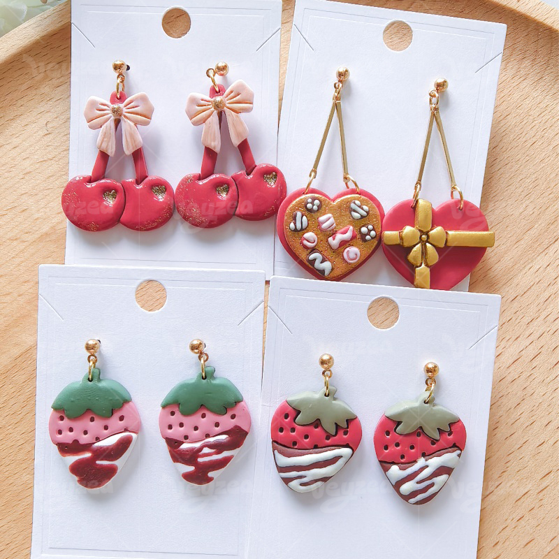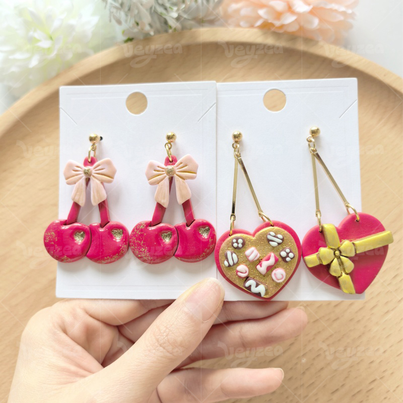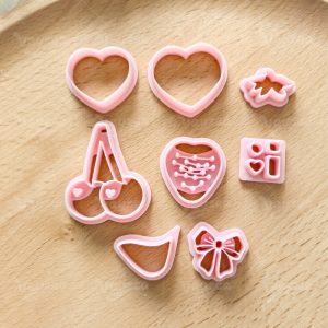 【 Valentine’s Day Series Cutters Set 】9 polymer clay earring cutters:Valentine’s Day Polymer Clay Earring Mold Clay Cutters,Contains Love Gift Boxes Clay Cutters, Strawberries Clay Cutters, Cherries Clay Cutters, Bows Clay Cutters And Other Elements, Which Can Create A Simulated Dessert Effect Of Chocolate Glaze.