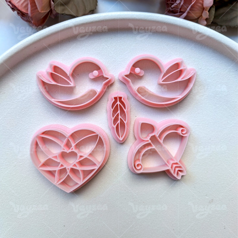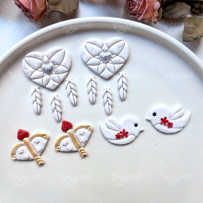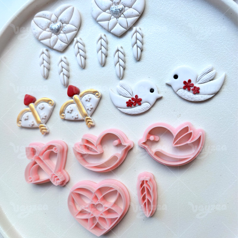 【Valentine’s Day Cupid Series Cutters Set 】5 polymer clay earring cutters:Valentine’s Day Cupid Polymer Clay Earring Mold Clay Cutters,Fresh And Romantic Earrings Clay Mold Clay Cutters,Including Cupid’s Bow Clay Cutters, Bird Clay Cutters, Feather Clay Cutters, Etc.