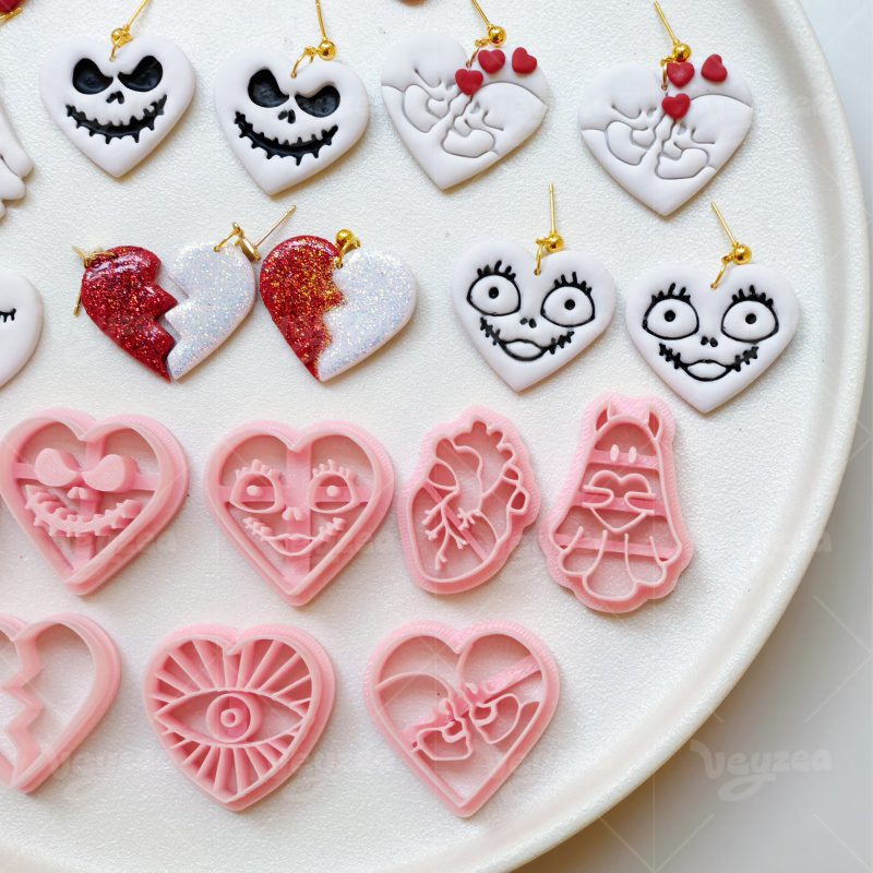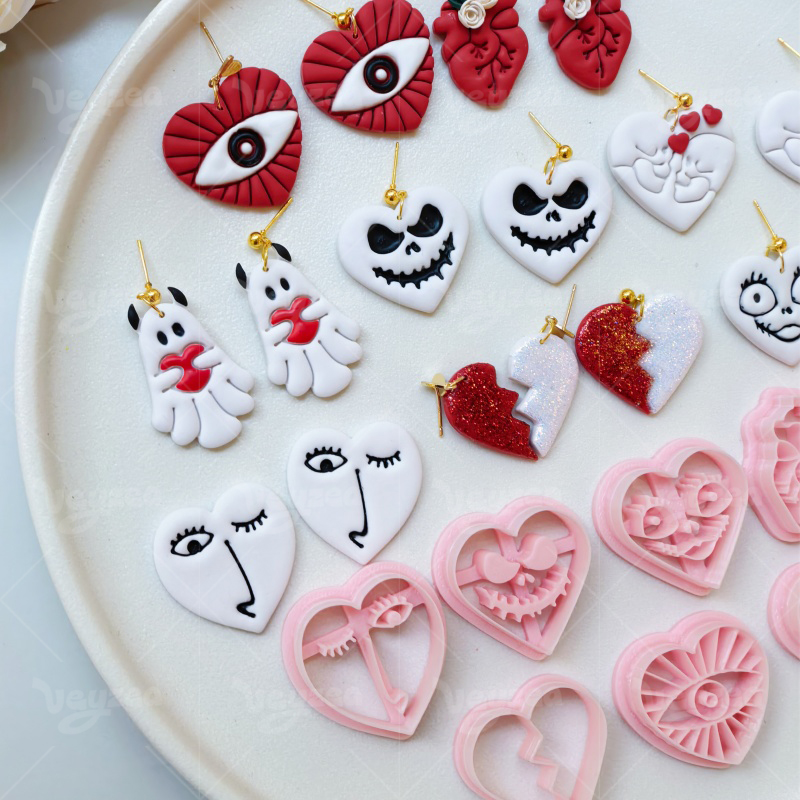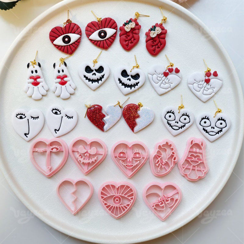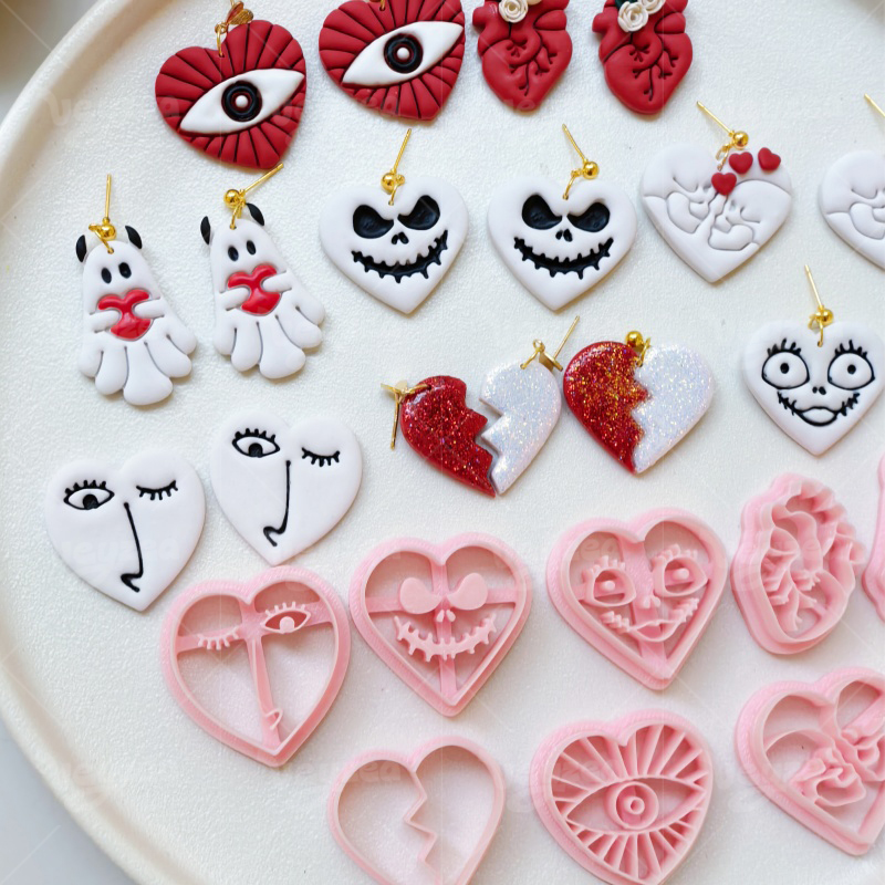 【Valentine’s Day Gothic Heart Shape Cutters Set 】8 polymer clay earring cutters:Valentine’s Day Gothic Heart Shape Polymer Clay Earring Mold Clay Cutters,Skeleton Ghost Clay Cutters Set,Includes Heart Eye Clay Cutters, Skull Face Heart Clay Cutters, Ghost Clay Cutters, Heart Clay Cutters, Etc.